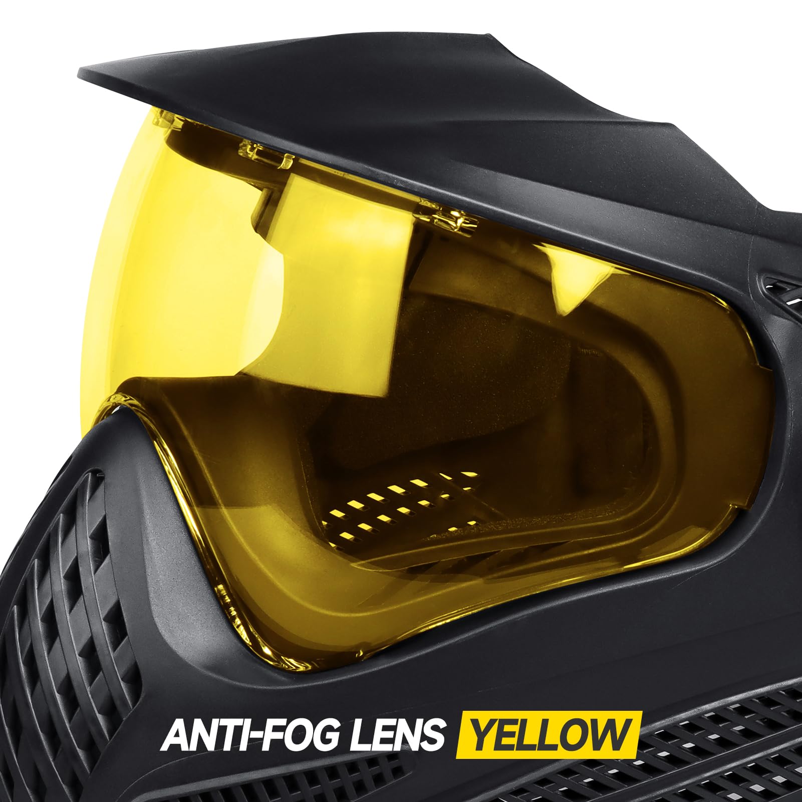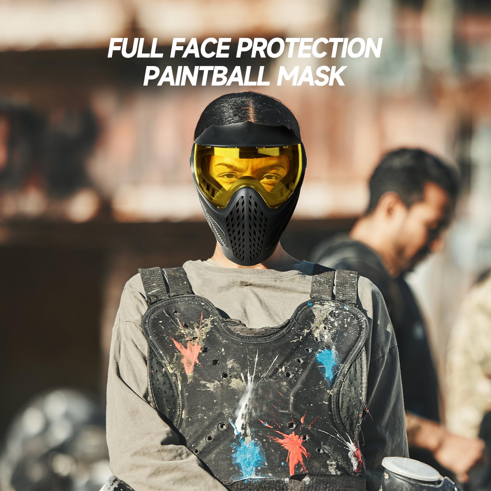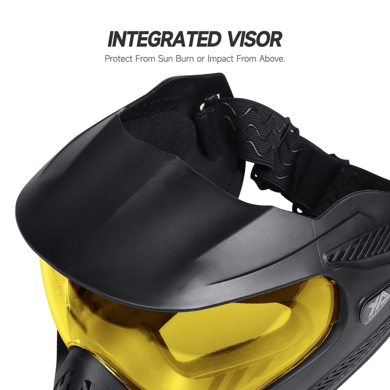 Xaegistac paintball mask with 210 ° ultra wide field of view: The one-piece curved lens provides a 210 ° panoramic field of view, and the curved surface design eliminates visual blind spots and quickly captures dynamic targets; The impact resistance of the lens can be comparable to the ANSI Z87.1 safety standard, withstanding a 200FPS high-speed paintball or airsoft impact