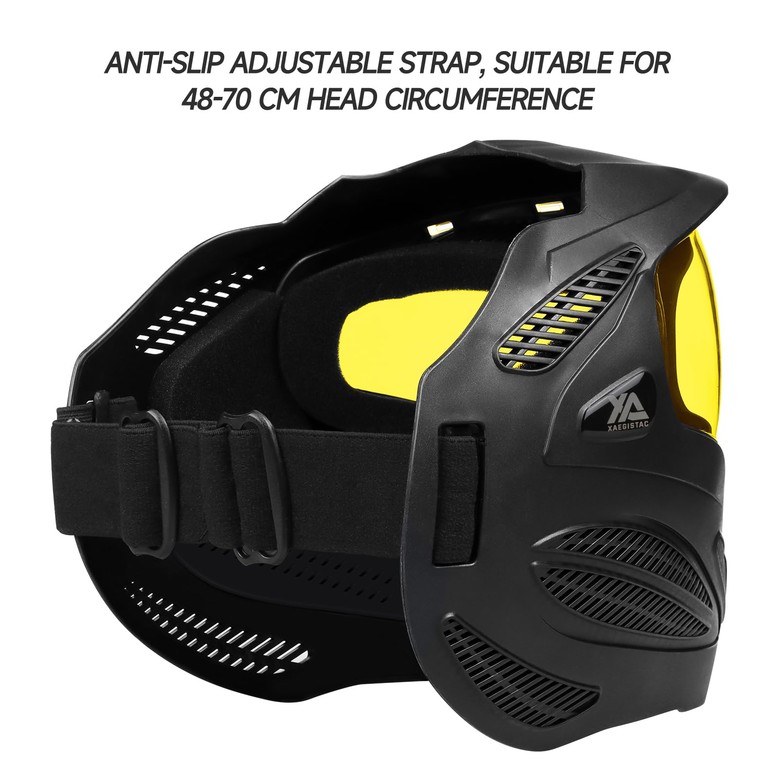 Adjustable anti slip headband: The elastic anti slip side strap precisely adapts to the head circumference (48-70cm), making Xaegistac paintball mask stable to wear without shaking