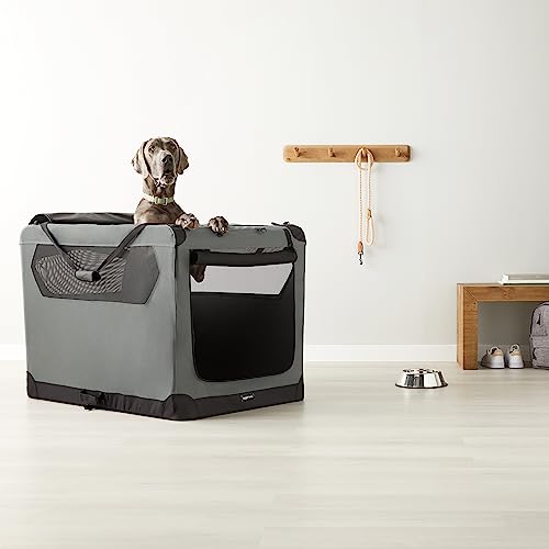 Amazon Basics Folding Portable Soft Pet Dog Crate Carrier Kennel, 42 x 31 x 31 inches, Grey