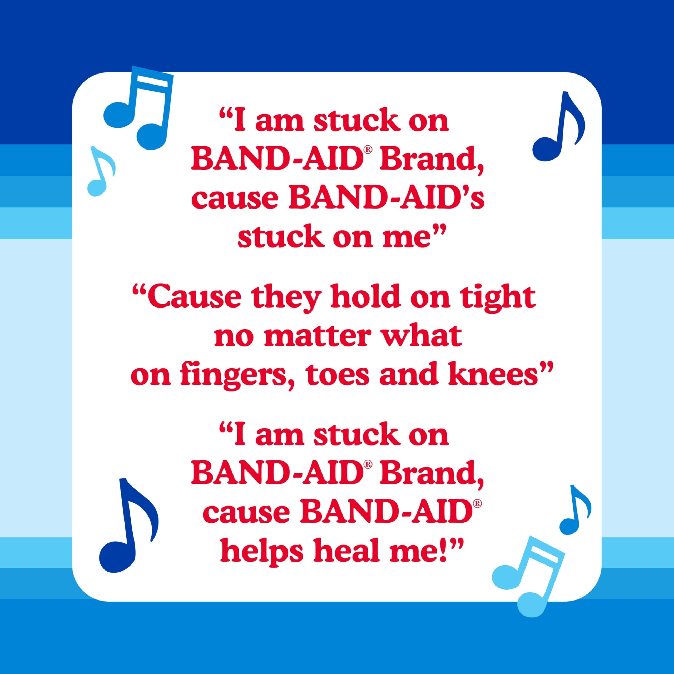 Help care for minor wounds, cuts, scrapes, & burns with BAND-AID Brand Adhesive Bandages Flexible Fabric, Jingle Anniversary Tin edition. 50 years ago, the iconic BAND-AID Brand "Stuck on You" Jingle made its television debut. Since 1975, the award-winning catchy tune remains one of the most recognizable jingles in history. These flexible bandages help protect against dirt & germs that may cause infection & are made with Memory Weave fabric for comfort. They feature a unique Hurt-Free Pad that won't stick to the wound as they wick away blood & fluids, allowing for gentle, pain-free removal. To use, apply the flexible adhesive bandage to clean, dry skin for minor wound care & change daily, when wet or as needed. For proper care, treat the wound with an antibiotic ointment such as Neosporin prior to application. This pack of fabric bandages in various sizes is the ideal addition to wound care supplies & first aid kits.