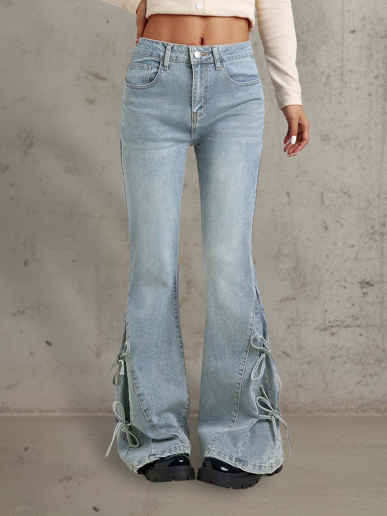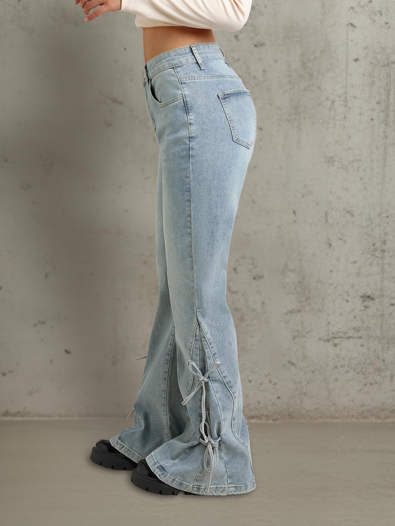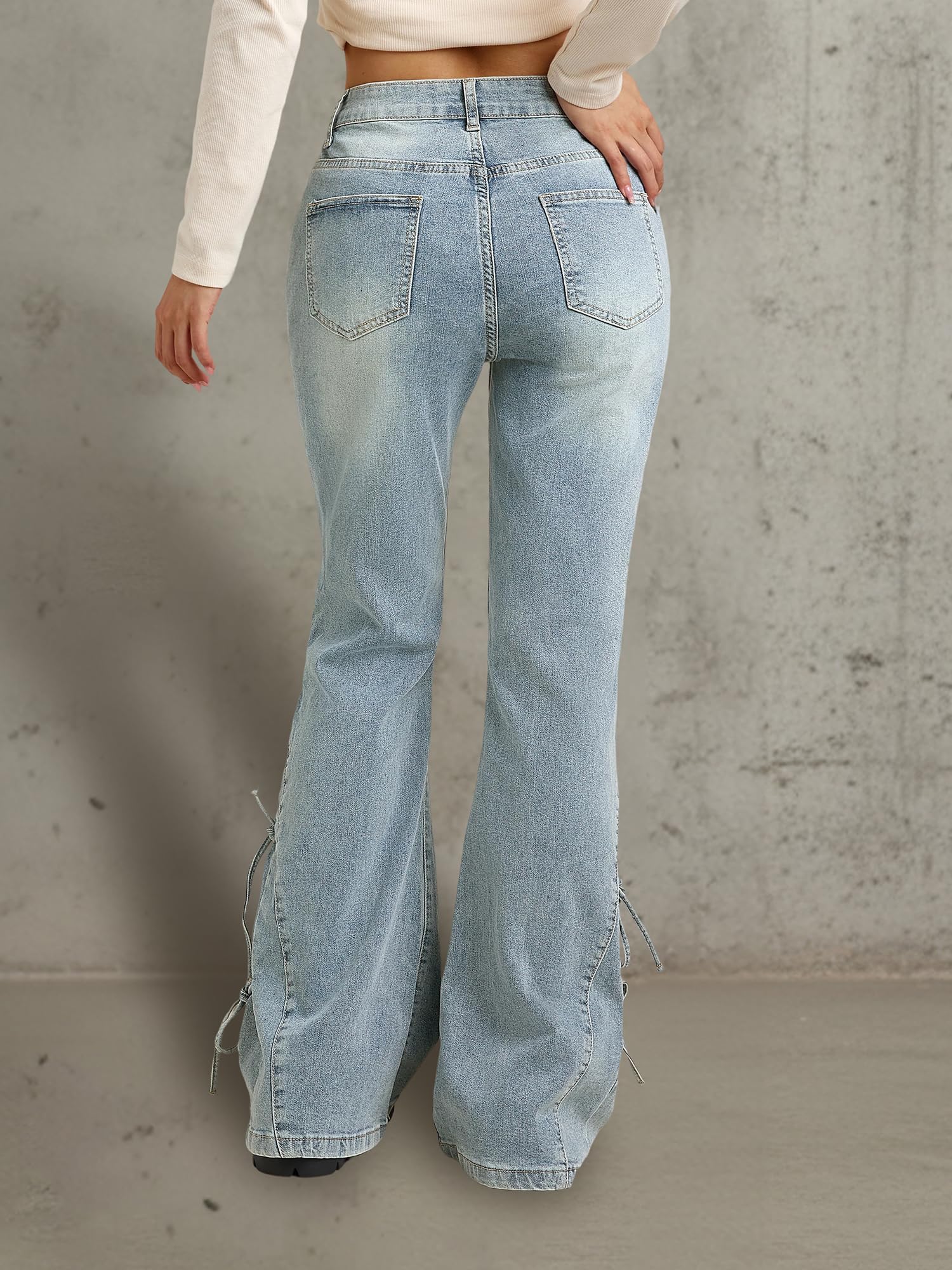 Feature: Women flare jeans that elongates legs and enhances your curvy. Unique lace up add a playful touch; tie them into an elegant bow for extra trendy . Stretchy fabric offers exceptional comfort and freedom of movement