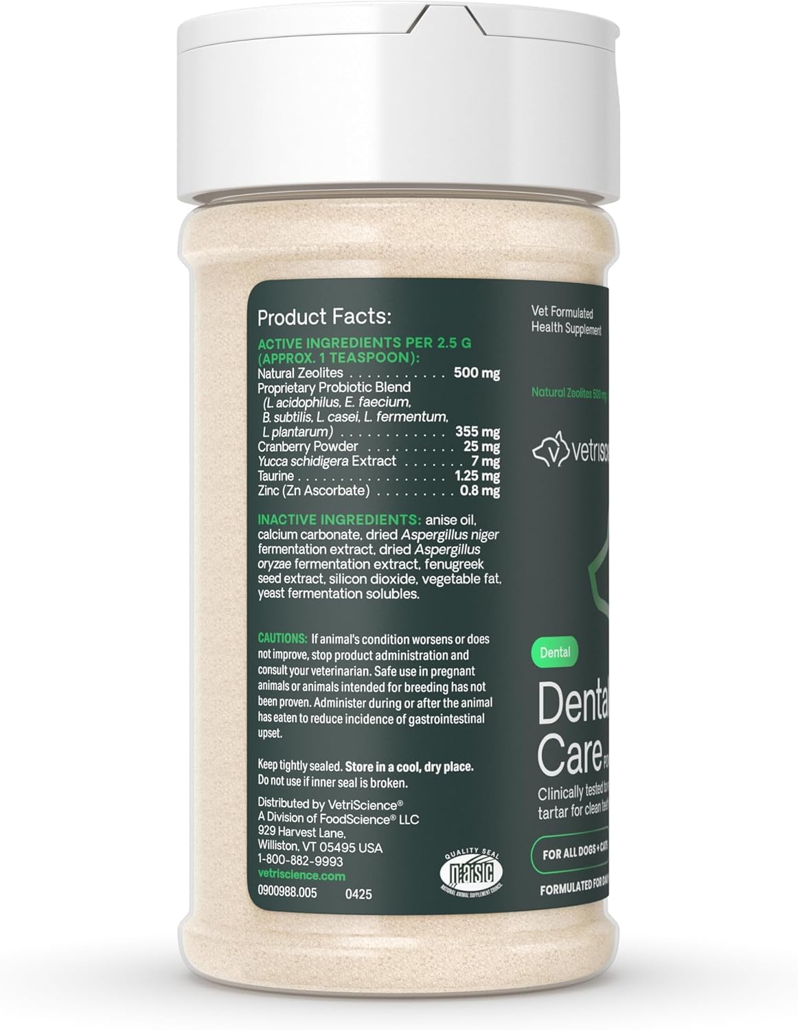 "Oral care that fits your lifestyle and your pet’s. VetriScience Healthy Mouth Dental Powder (2 Pack) provides an effortless way to support clean teeth, fresh breath, and healthy gums every day. Formerly known as Perio Support, this clinically tested formula was shown to reduce plaque by 20% and tartar by 18% in 28 days when used as directed. A blend of natural zeolites, cranberry, yucca, and probiotics helps balance oral bacteria, discourage buildup, and keep your pet’s mouth fresh. Simply sprinkle over meals no brushing, no struggle. Ideal for multi-pet homes, this twin pack delivers extended supply and consistent oral support for dogs and cats of all ages and sizes. With NASC certification, third-party testing, and veterinarian formulation, you can trust every scoop of VetriScience Healthy Mouth to help your pet feel fresh, healthy, and ready for close cuddles again."