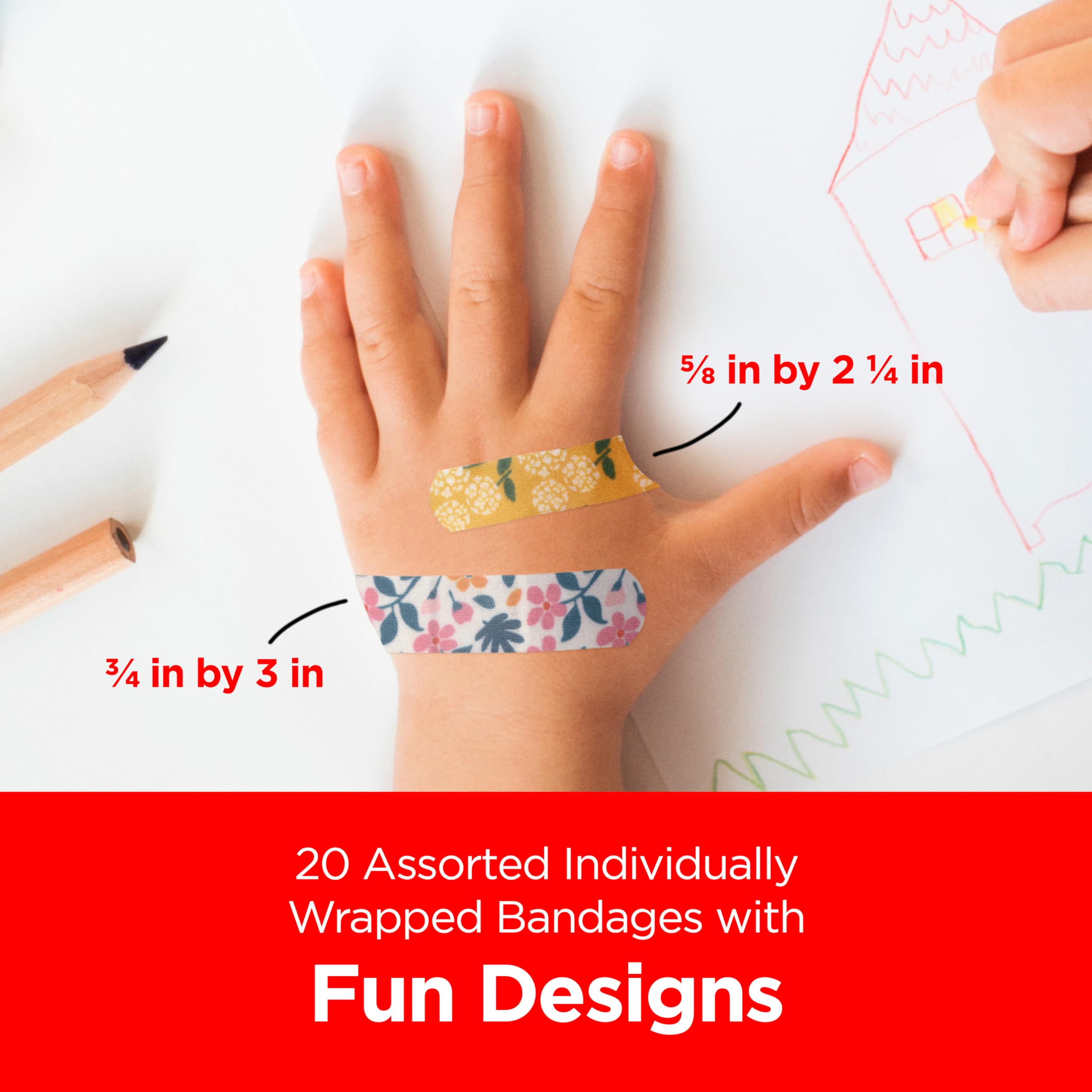 Care for your child's minor wounds and bring a smile to their face with Disney's Encanto BAND-AID Brand Adhesive Bandages. These first aid adhesive bandages for kids and toddlers cover minor wounds, cuts and scrapes to deliver daily wound protection. Perfect for kids and toddlers, each individually wrapped sterile bandage features Disney's Encanto characters from the animated movie to make first aid more fun for your child. As part of your essential first aid supplies, the Disney decorated bandages protect minor wounds from contact with germs and dirt that may cause infection and delay healing. These sterile kids' bandages come in various sizes and are comfortable to wear thanks to a non-stick pad that won't adhere to the wound. The box contains individually wrapped sterile first aid bandages. Disney