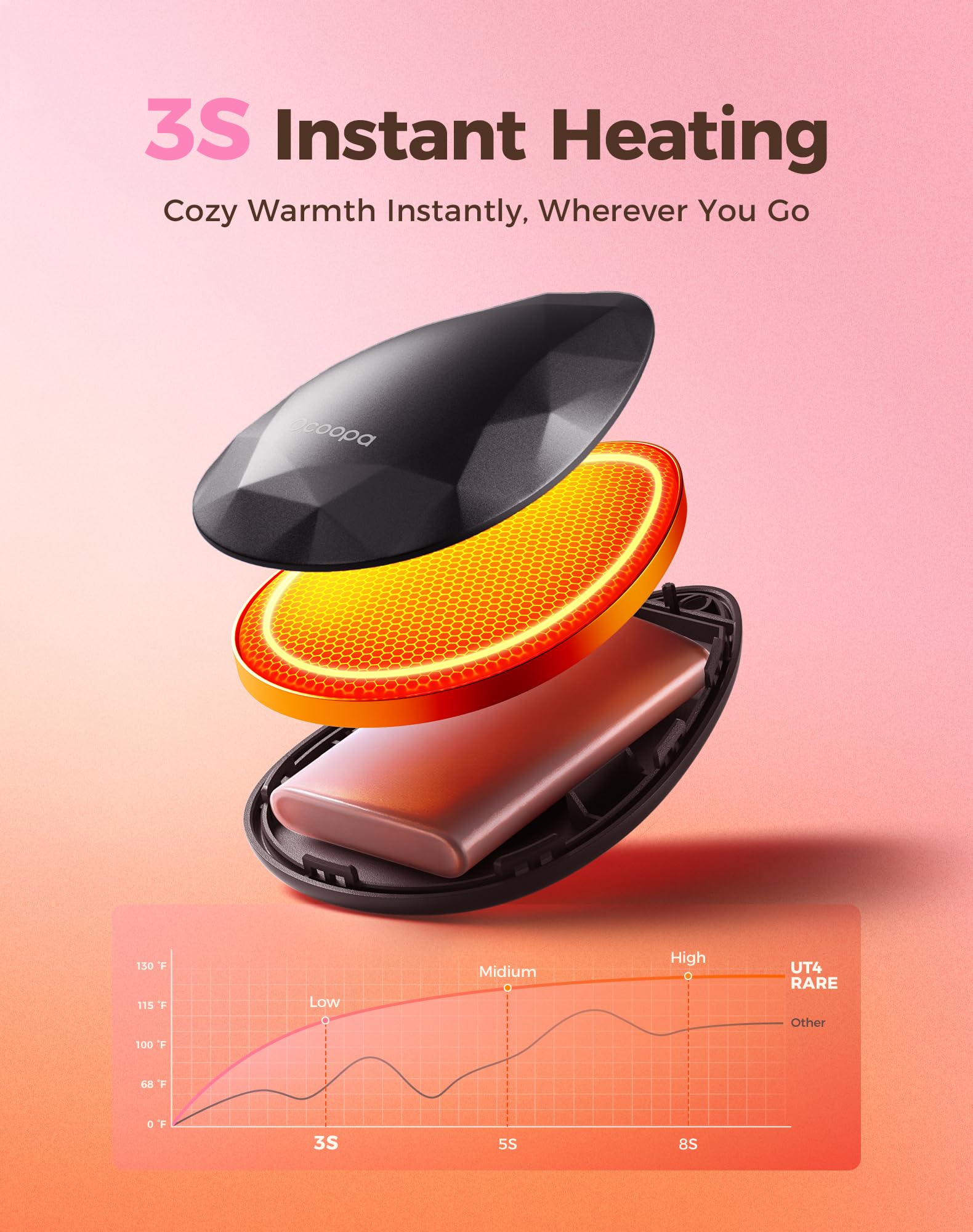 ✨OCOOPA First Hand Warmer Designed Just for Women: Meet the UT4 Rare — where elegance meets everyday practicality; With its unique diamond-inspired design, this hand warmer doubles as a standout accessory; Durable, vibrant, and silky-smooth to the touch, it's the perfect gift for women who value style, warmth, and comfort in their daily lives