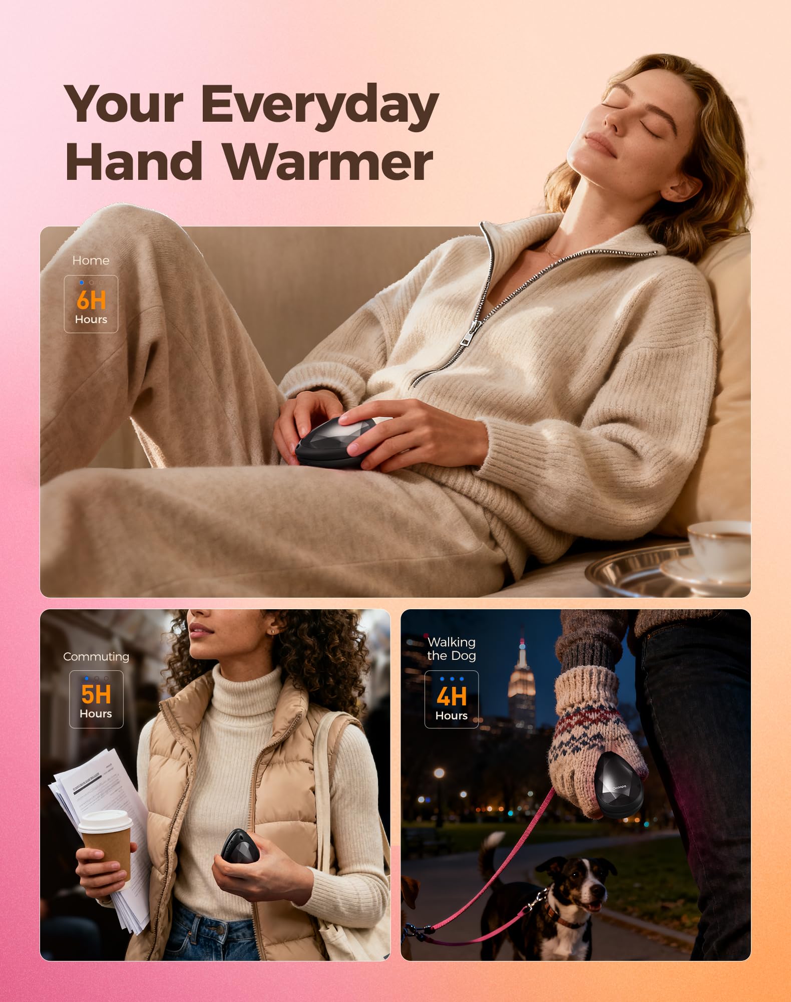👝Stable Warmth, All-Day Style: Whether you're commuting, enjoying a winter walk, or simply cozying up at home, this hand warmer has you covered for up to 5 hours on a single charge; It’s small enough to slip into your pocket or purse, so warmth is always within reach