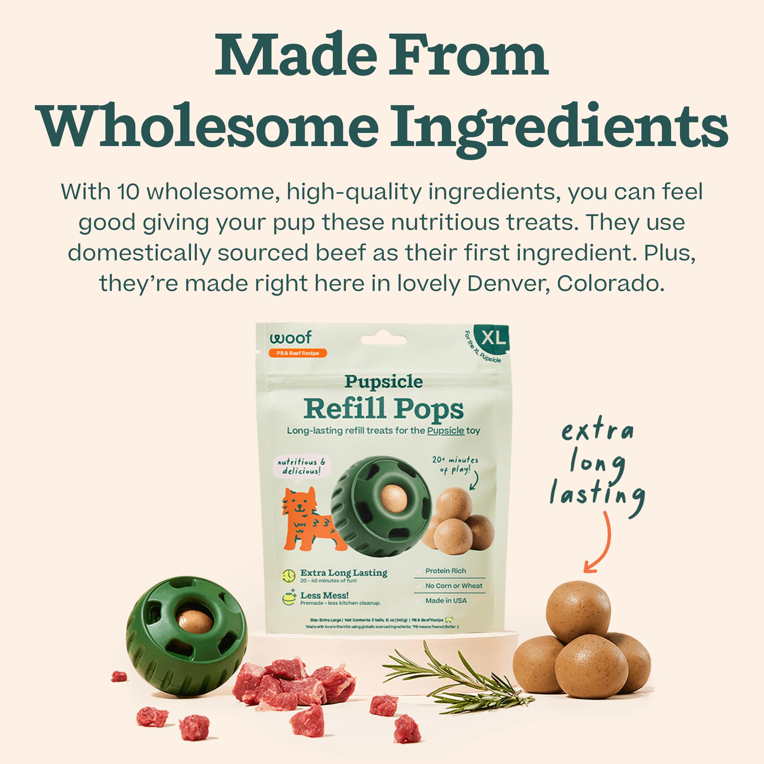 Made in USA: At Woof, we create thoughtfully designed products so you can tell your dog I love you in a way theyll understand. Man's best friend deserves safe, clean, and long-lasting fun, and you deserve the quiet that comes with it. Pupsicle Refill Pops are a wonderful way to keep dogs busy with the long-lasting Pupsicle toy.