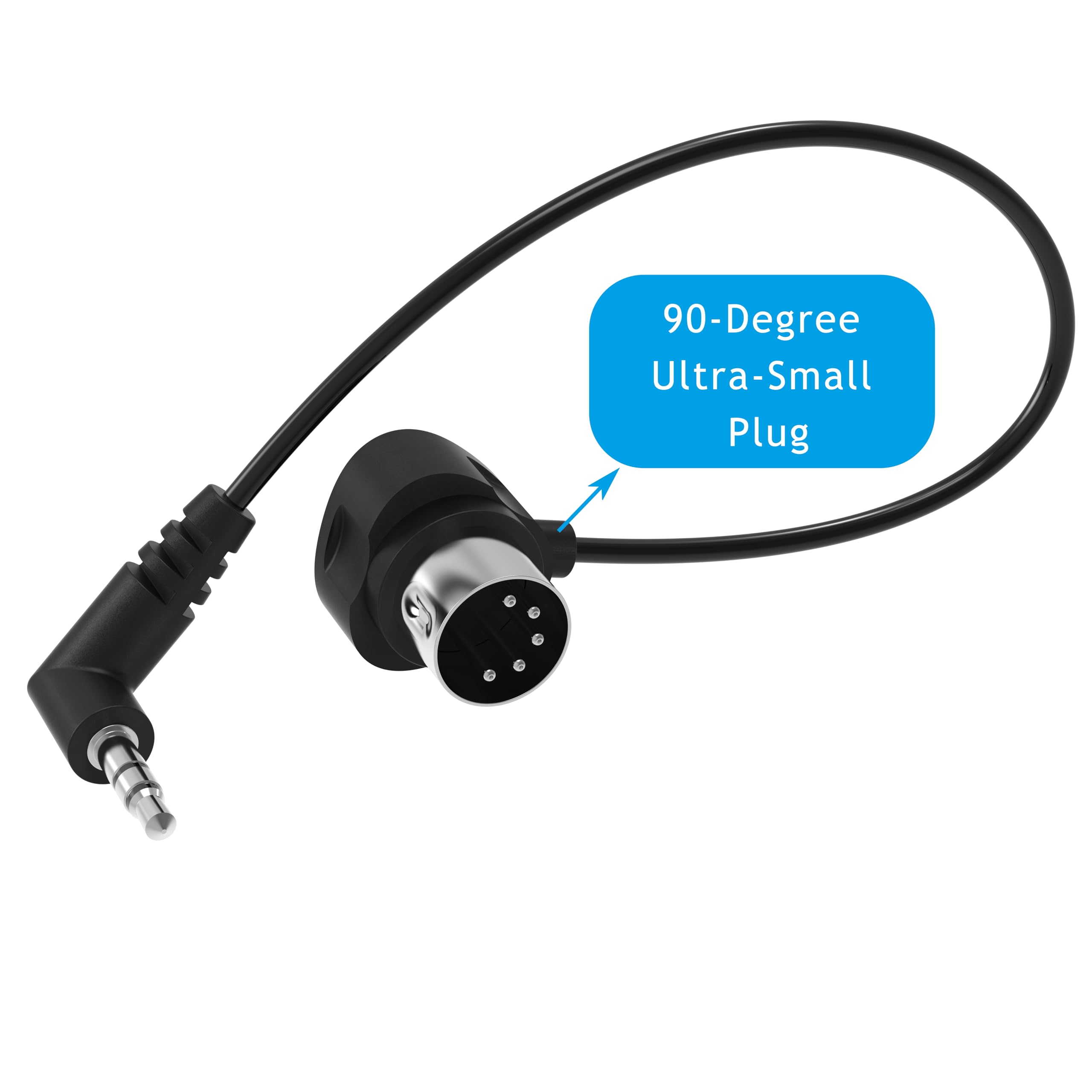 FORE TRS Type-A 3.5mm Ultra-Small plug MIDI cable supports all the MIDI equipments with the 5 Pin Din & 3.5mm port, provides premium MIDI transmission. Side's groove is designed for easy holding. The 90-Degree Ultra-Small Plug adapts especially tight spaces.