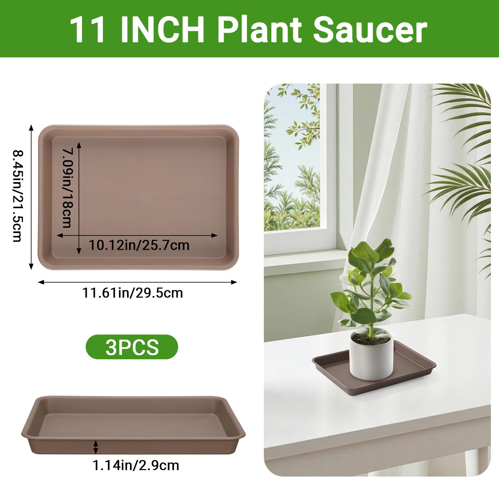 【Value Package】Package includes 3 pcs 11 inch brown plant pot saucer. These versatile plant trays for pots make it easy to create your ideal plant setup.