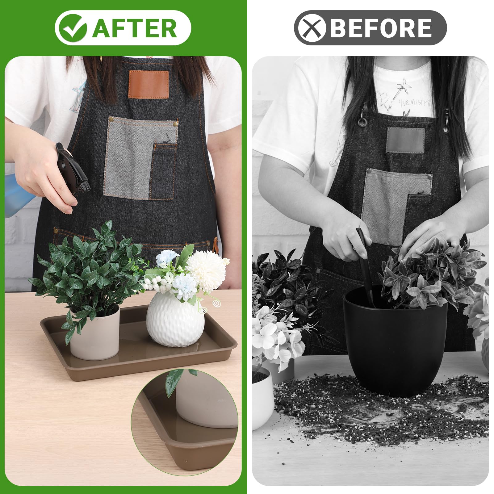 【Floor Protection Design】 These watering trays act as a protective barrier, collecting excess water and soil overflow, preventing damage to your floors and furniture while keeping your living space tidy. Use these plant trays to enhance both the style and functionality of your home.