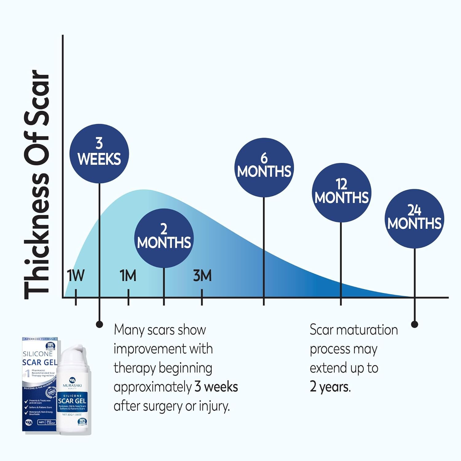 NOTICEABLE RESULTS IN WEEKS: Apply 2–3 times a day. See visible improvements in as little as 8 weeks for new scars and 3–6 months for older ones. Massage in until fully absorbed.