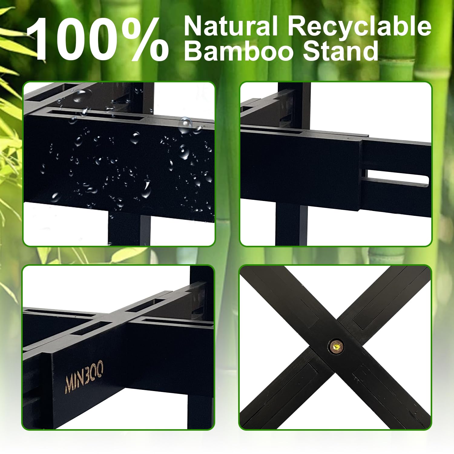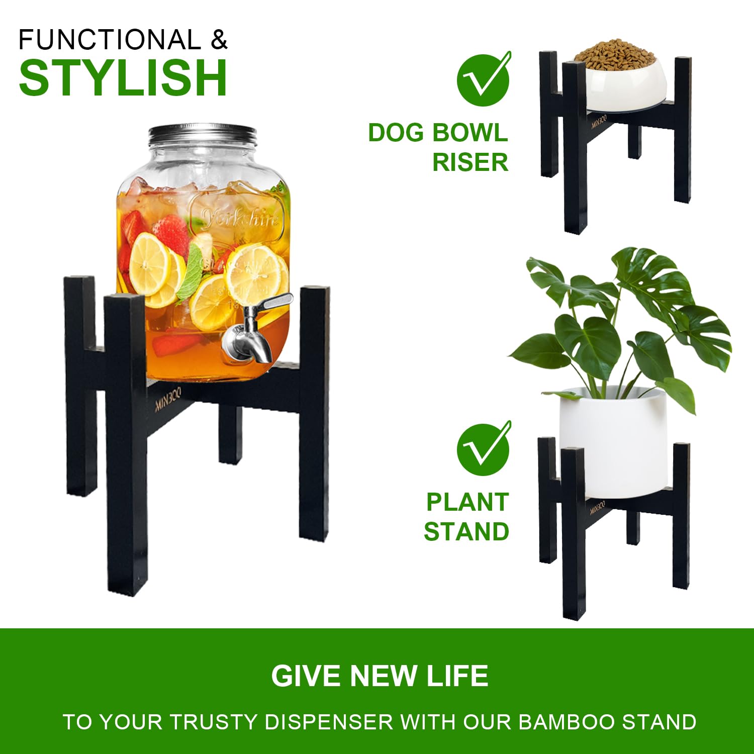 MULTI-FUNCTIONAL USE - Place any jar with tap on this Minboo bamboo stand to raise it from the surface and make it easier to use and clean. It can be used not only as a water or drink dispenser stand for parties, but also be used as a stand for water filter pitcher, 1-5 gallon water container, water cooler, laundry detergent dispenser, indoor plants, dog bowls, etc.