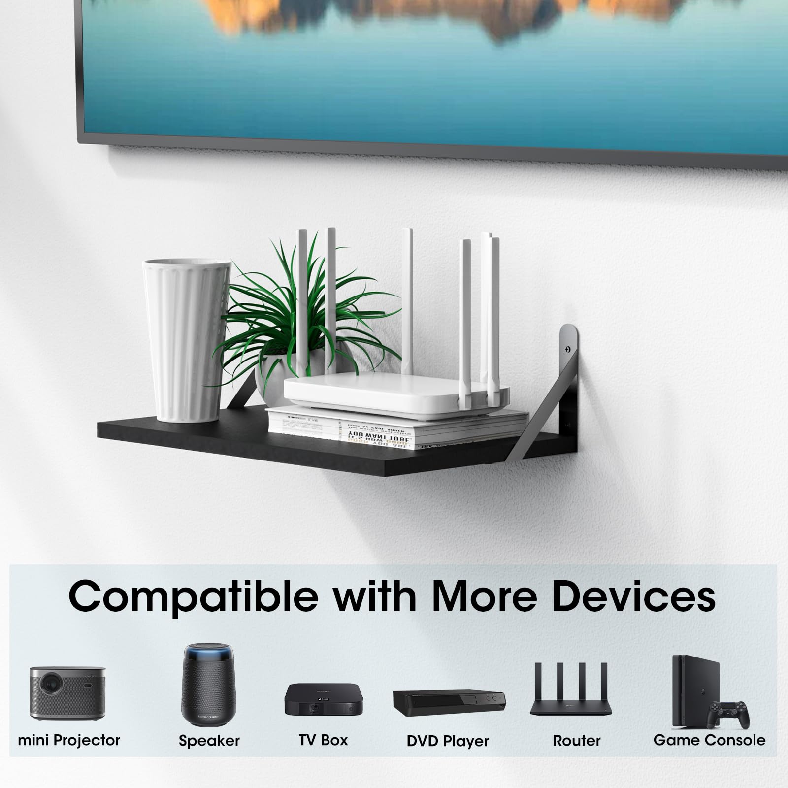 【VERSATILE USE TV Shelf for DVD Players, Cable Boxes, Games Consoles】This shelves is perfect to store and display your DVR DVD player/projector/TV box/cable box/router/remotes/game console and other media items, nice for all living room/office/bedroom/theater room use, keeping your devices looking sleek and modern. You can mount this floating shelf under the TV or everywhere you need it