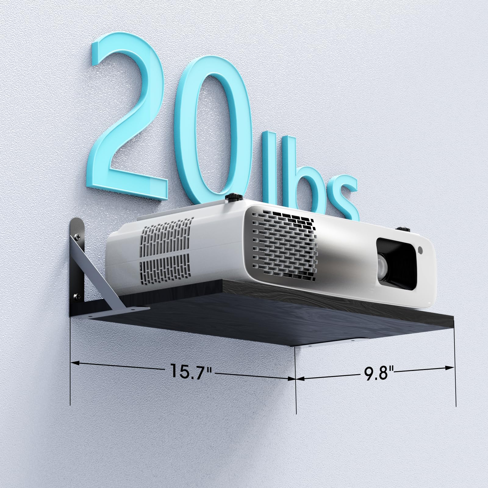 【STABILITY AND DURABILITY PROJECTOR MOUNT SHELF】This sturdy shelf fits for projectors below 15.7*9.8 inch. Max Load reach up 20lb. The floating shelves is wider and sturdier than others to safely hold collectibles, photos, small plants and showcase favorite dishes or build your own coffee bar, making them a great storage solution for any room and a wide variety of household and office items