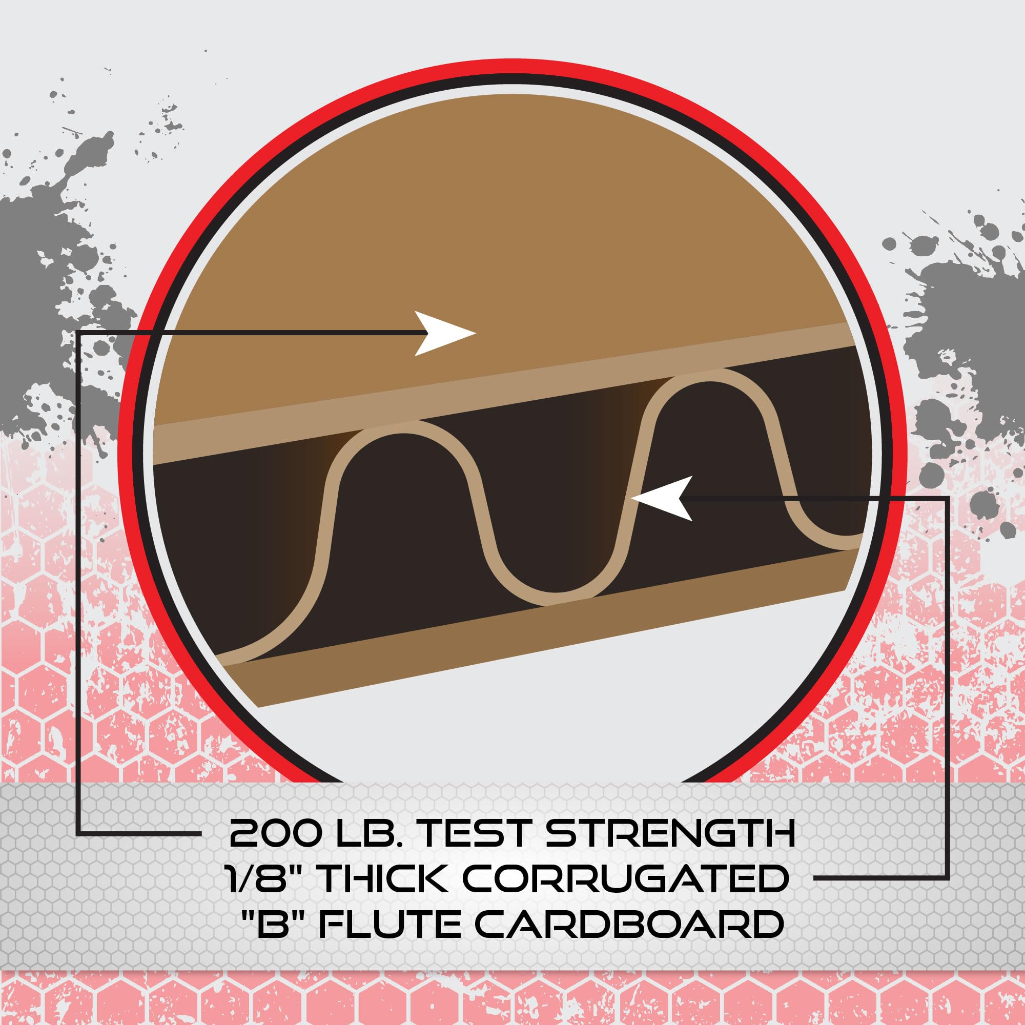 Target Material is 200 lb. Test Corrugated Cardboard with Vertical "E" Flute size per USPSA specifications