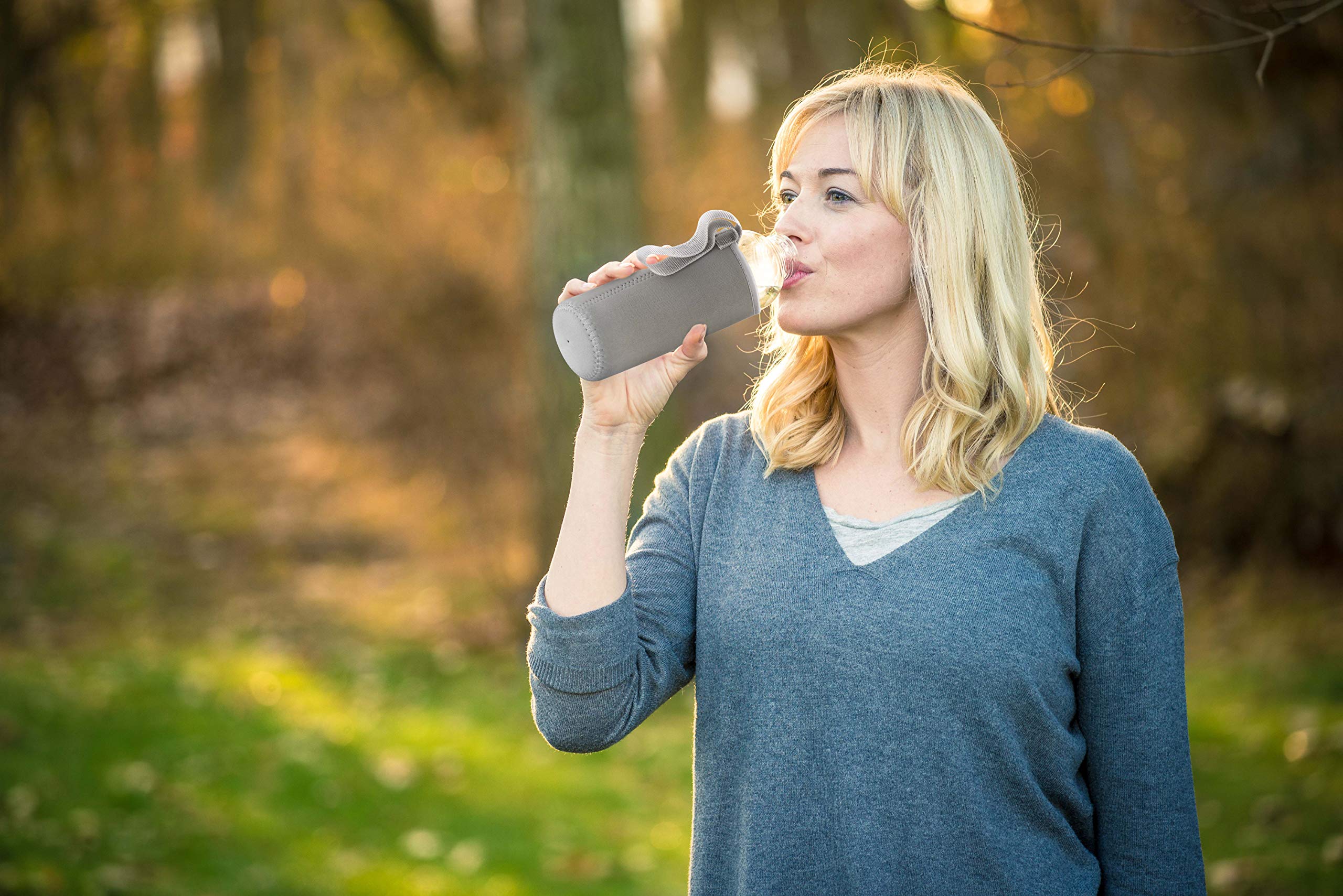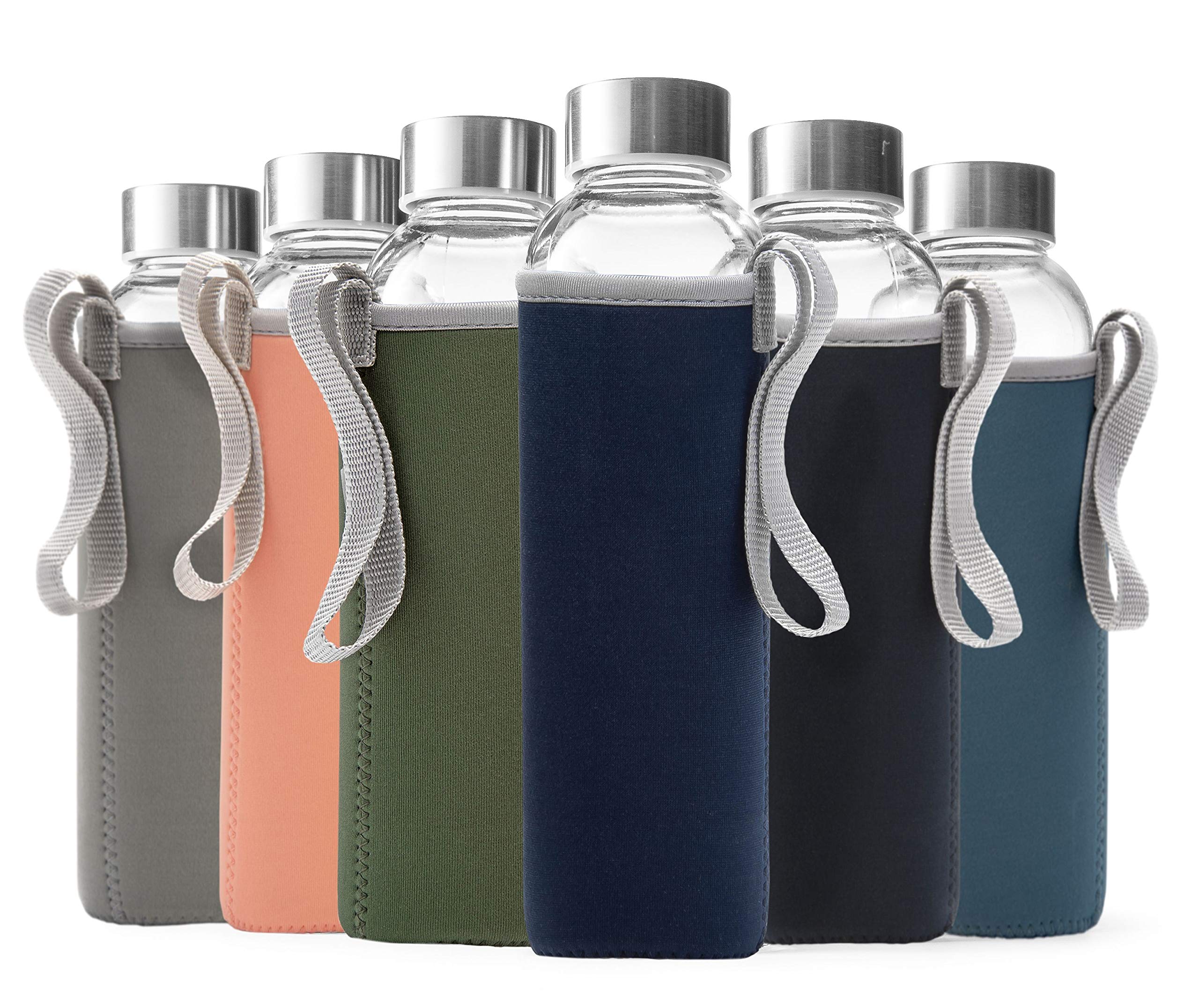 SIX COLORFUL NYLON SLEEVES TO CHOOSE FROM: Want to match your new outfit? Just tuck these extra-durable glass bottles into our cozy nylon sleeves. They look stylish and insulate at the same time!