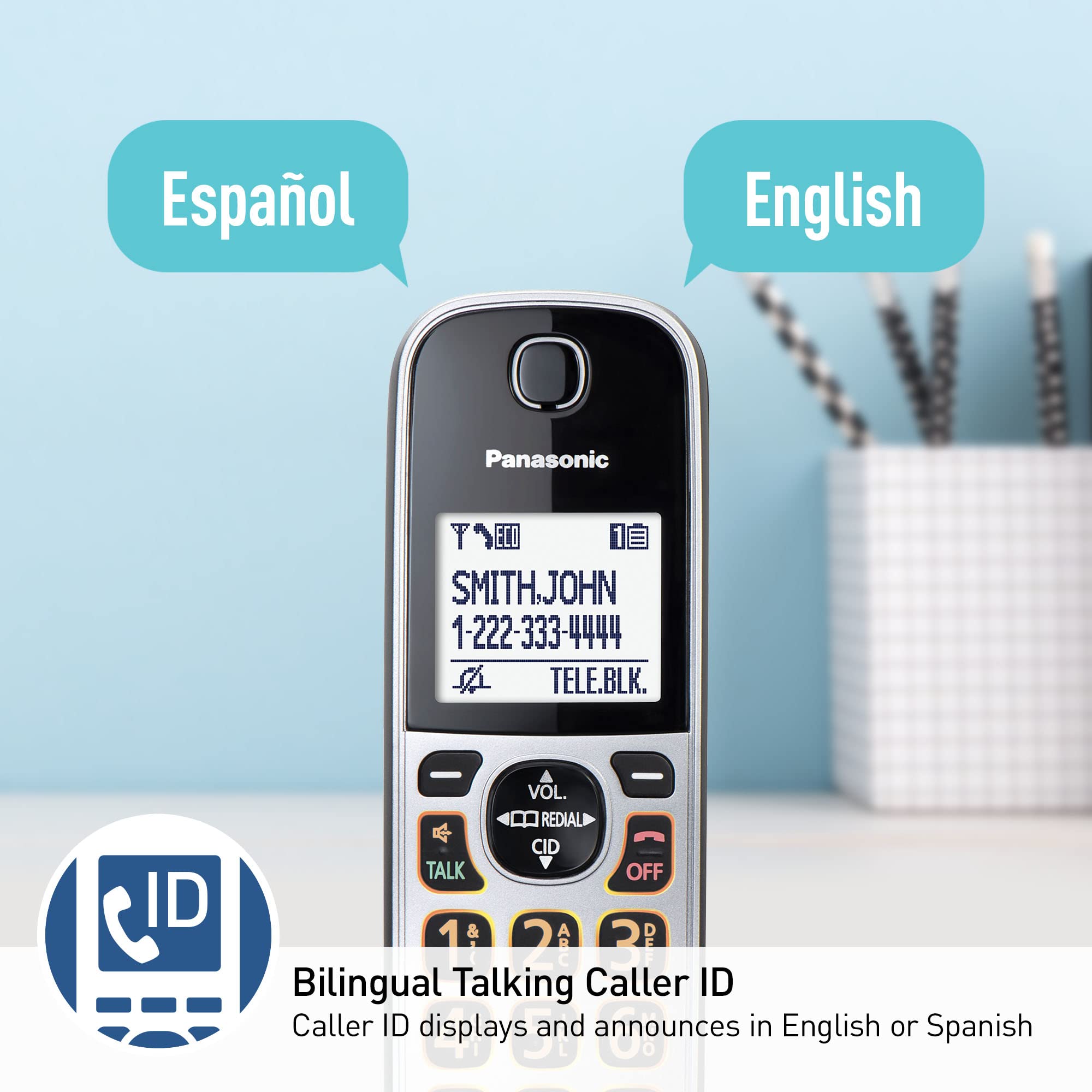 Hands-Free Phone Functions that Simplify Your Life: Hear caller announcements in English or Spanish with Taking Caller ID; Full duplex speakerphone lets you use your handset hands-free and monitor different areas of the house (such as a baby’s room)