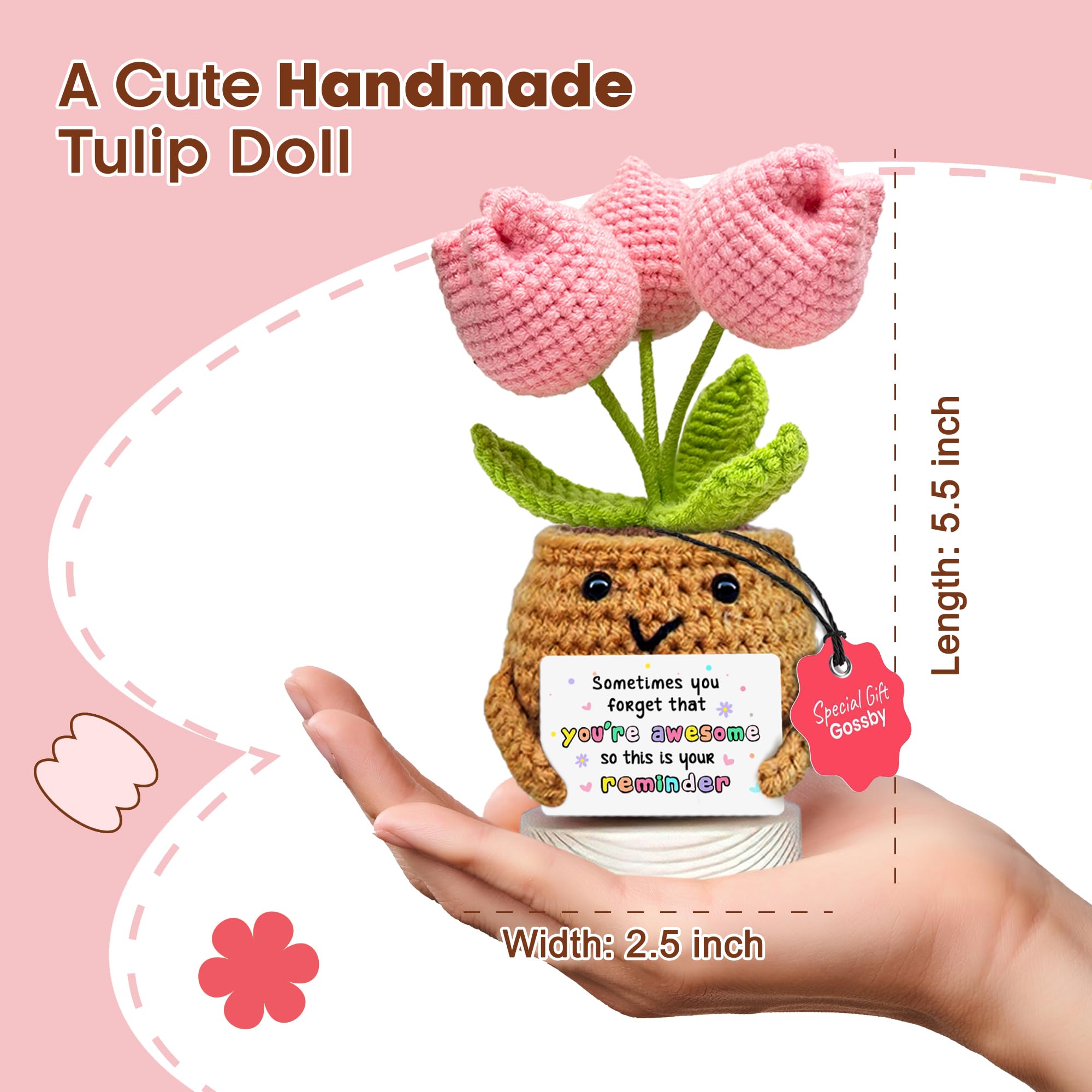 🧶100% Handmade Knitted Positive Tulip Flower: bearing an inspiring message, this tulip flower crochet doll is lovingly crafted by expert artisans.