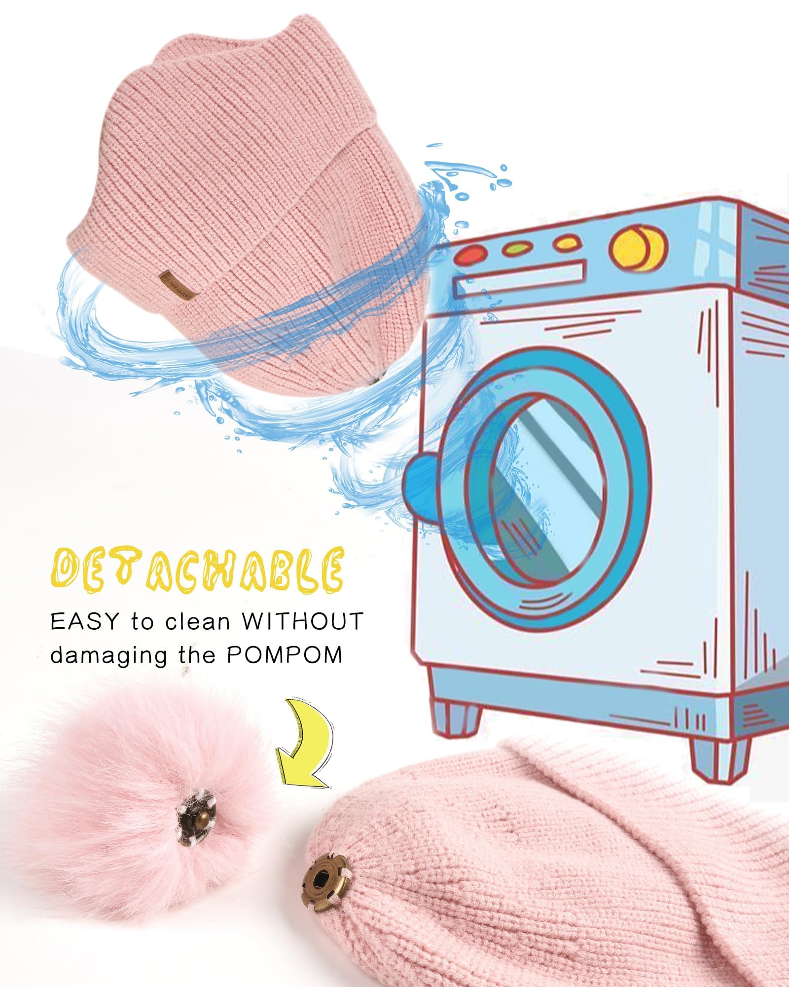 Easy to clean: The Faux fur pom at the top creates a cuteness overload makes your child more stylish. The detachable pom is easy to take down and clean hat