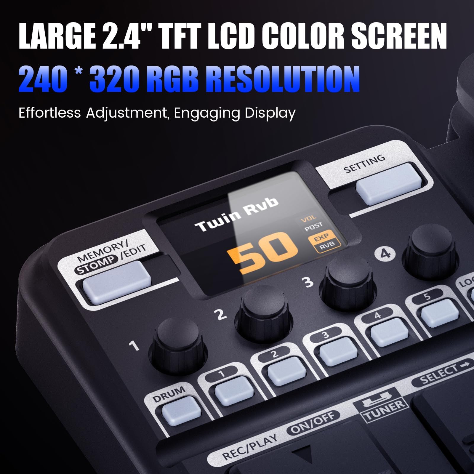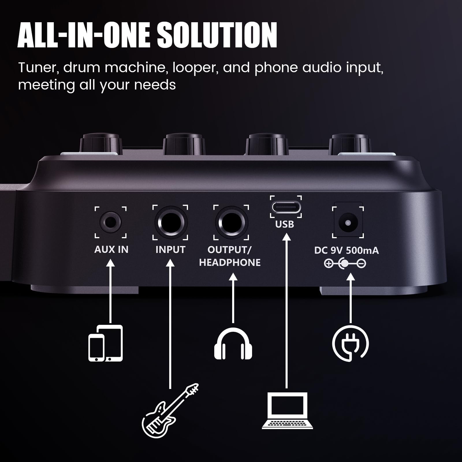 Flex Your Music Creativity: With 50 preset patches, even beginners can start playing right away. Instantly switch tones in Memory Mode during live sets. The built-in tuner, 30s looper, and 42 drum rhythms, and AUX IN to connect your phone for playing along with backing tracks—maximizing your creative inspiration