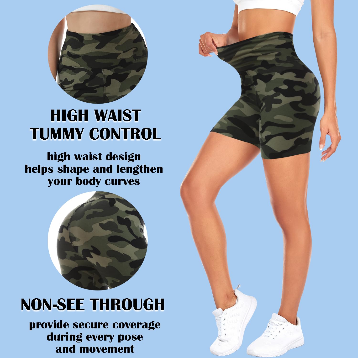 4 WAYS STRETCH & NON-SEE-THROUGH - This workout spandex shorts for women is made of 4 way stretch and non see through fabric, which provides maximum comfort and protection during your every pose and movement, allows for maximum comfort and wear ability