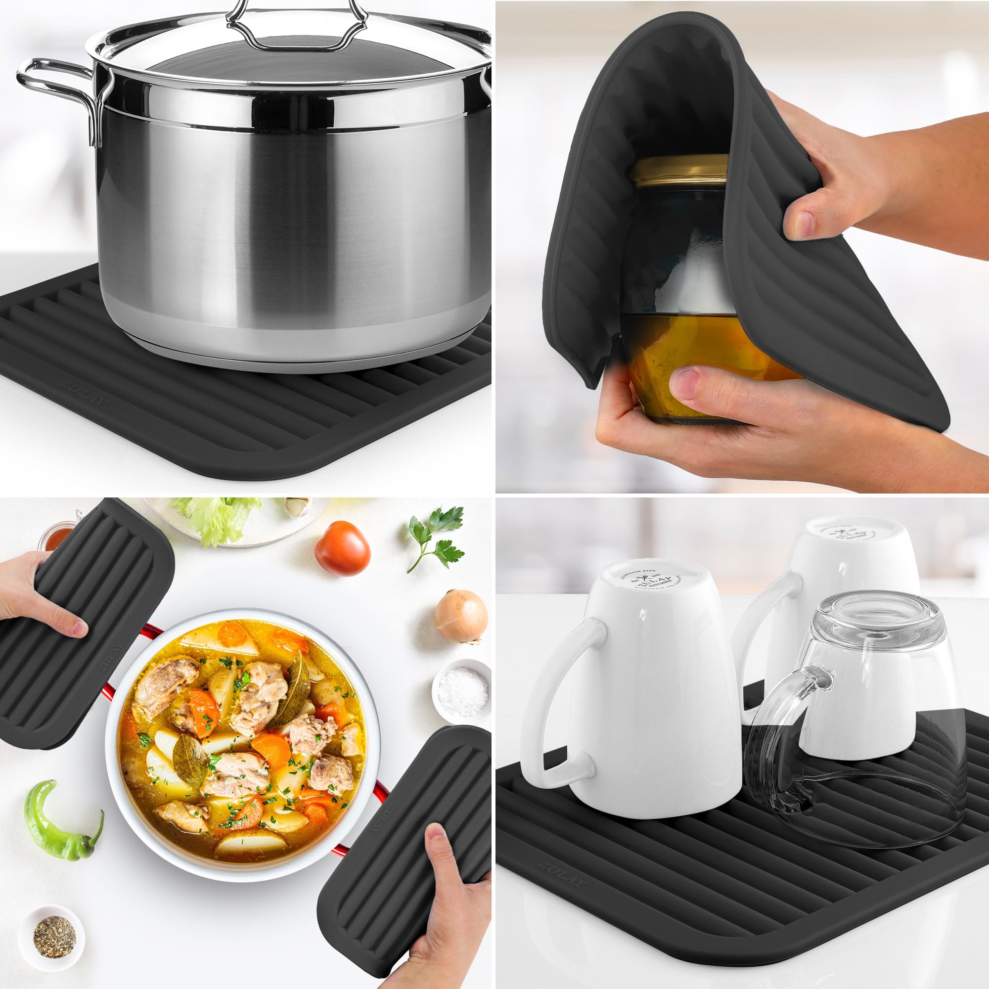 Great For Countertops & Hot Items: Lessen your everyday kitchen struggles with these nifty and convenient mats. The Zulay Silicone Pot Mat is specially designed to make your life comfortable when you’re busy in the kitchen. Made of BPA Free 100% Silicone, it can withstand cold and hot temperatures from -40 to 480F. Designed with waterproof, non-slip pads to prevent slips. Its durable and reliable design helps protect your countertops from hot pots, pans, drips, and spills! Comes in a 2 pack.
