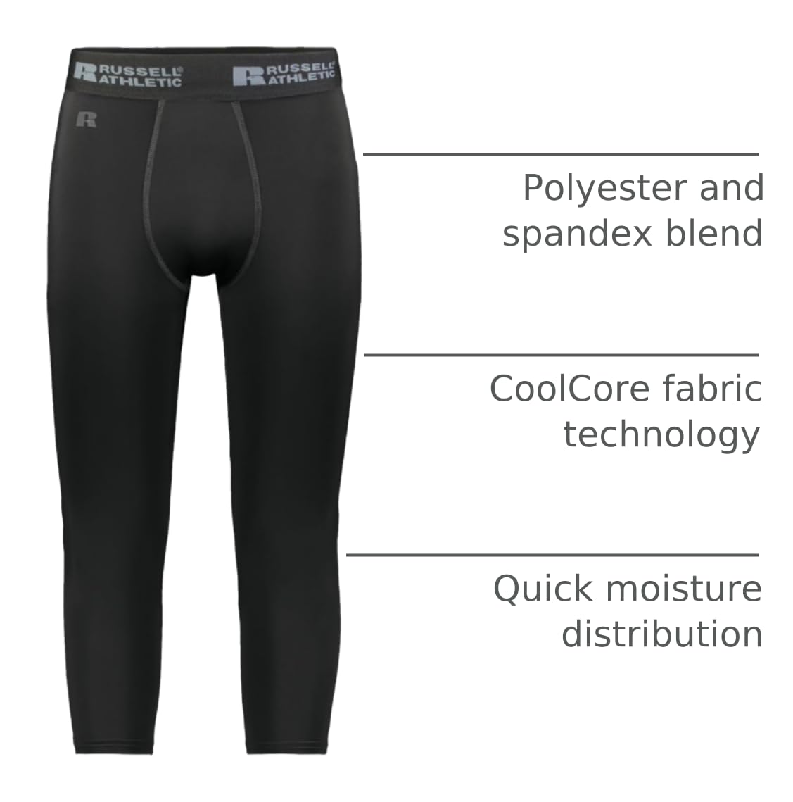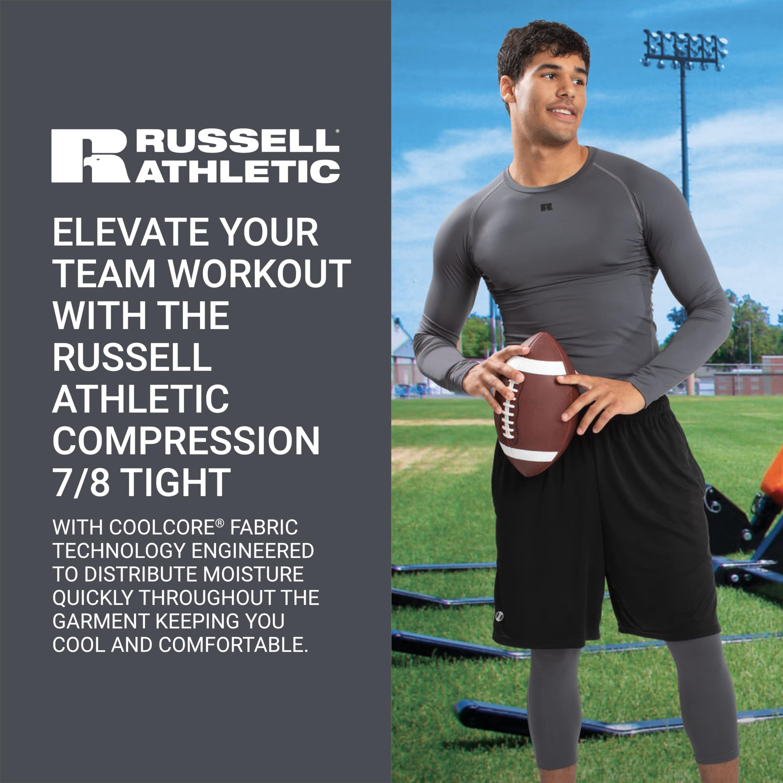 Description Elevate team workouts and practices with the Russell Athletic R23CPM Compression 7/8 Tight, designed for competive teams. Crafted with a blend of 84% polyester and 16% spandex elastane Xtreme compression fabric, these tights integrate Coolcore® fabric technology for superior moisture distribution, ensuring quick drying and optimal cooling. Key features include a 92% polyester/8% elastane stretch mesh insert located at the back of the knee and gusset for enhanced mobility and ventilation. The 4-way stretch material guarantees increased movement, coupled with an ultra-tight fit and a soft brushed back exposed elastic waistband for maximum comfort and support. Offering 50+ UPF protection, these tights are perfect for outdoor training, safeguarding you from harmful UV rays.