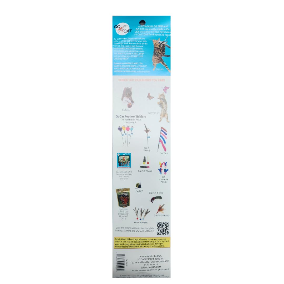 Da ball is the latest addition to the cat catcher series. The specially designed crinkle ball spins and twirls to your cats delight. The special braided safety wire disappears from their site as they focus on catching their colorful prey. Glitter wands available in six fun colors! if your cats haven't tried any of the go cat products they don't know what they are missing and if they have we know they want more.