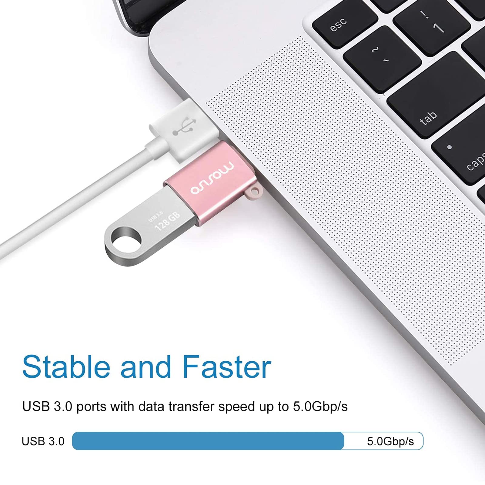 This USB-C to USB-A connector also support synchronous charging to your phone and tablet with data transfer speed up to 5.0Gbps.