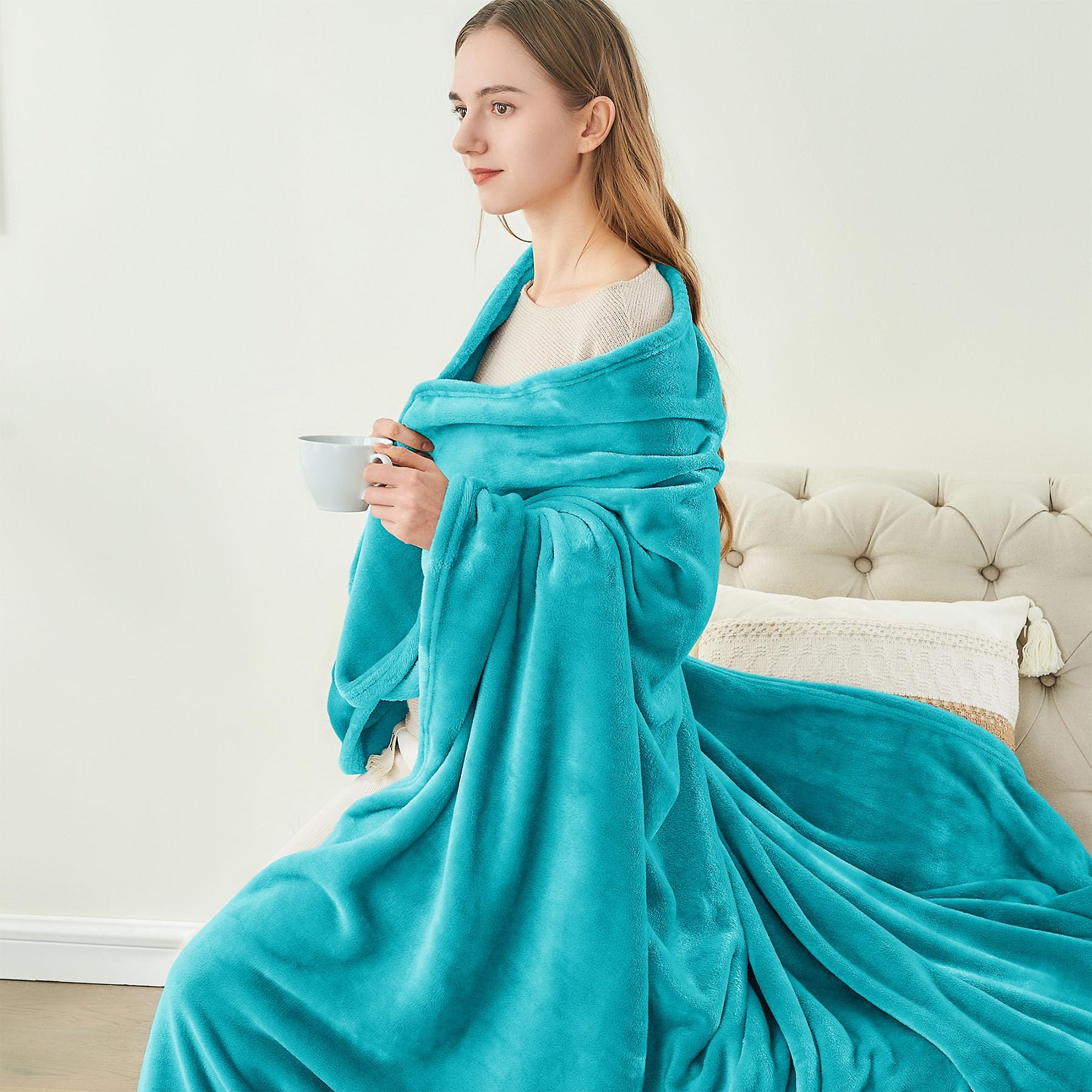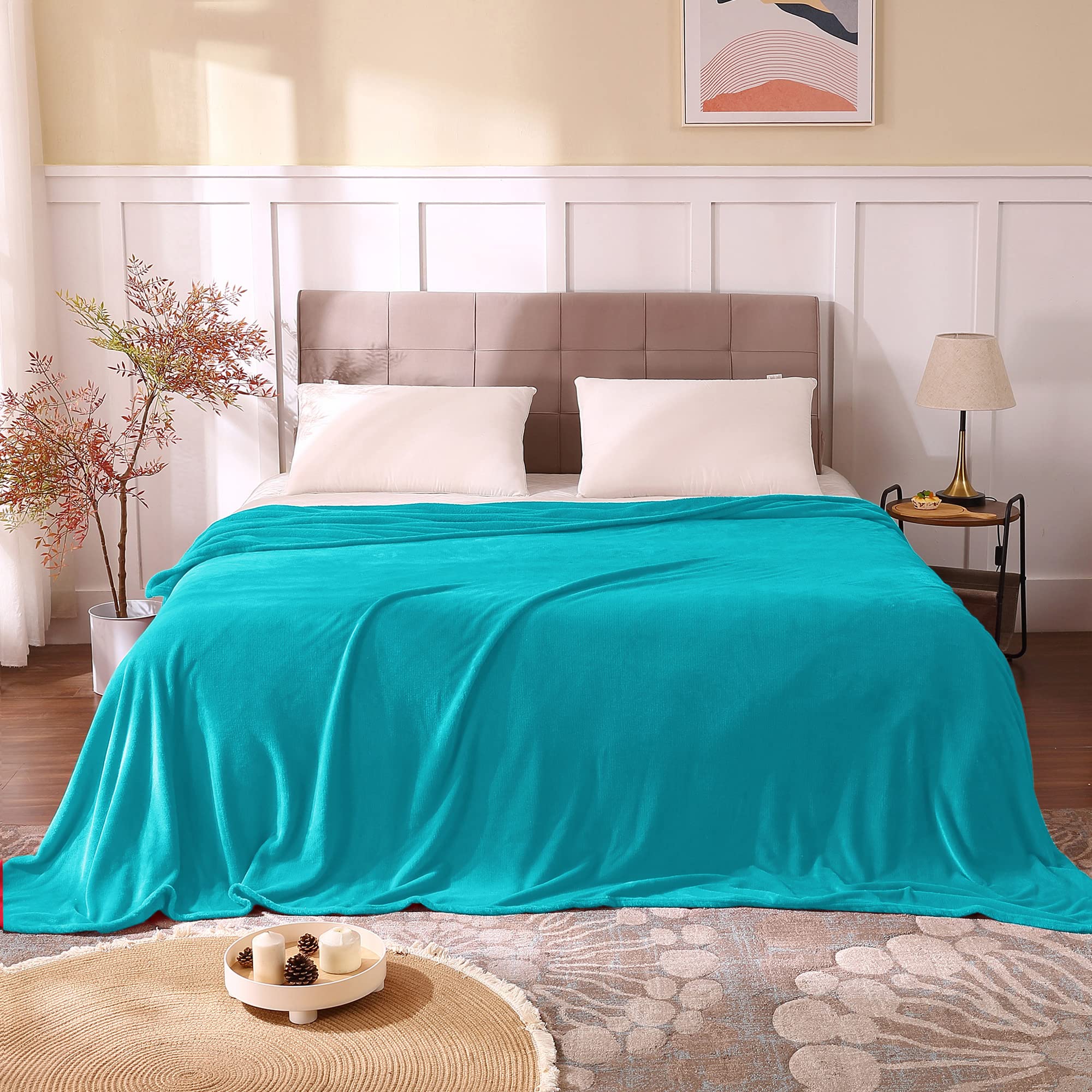 DOUBLE-SIDE FLUFFY FLEECE BLANKET: The flannel fleece fabric we choose is originally made from 100% polyester and brushed to create super softness on both sides, the throw is designed to be solid but elegant.