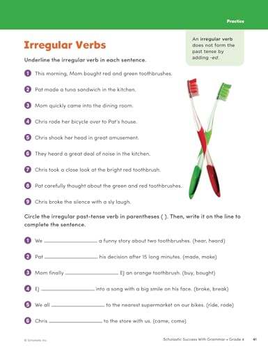 Practicing grammar skills has never been so easy! Perfect for classroom or at-home use, this exciting ready-to-use resource provides invaluable reinforcement and practice with key grammar topics such as: sentence types parts of speech common and proper nouns sentence structure verb tenses subject-verb agreement punctuation and more!