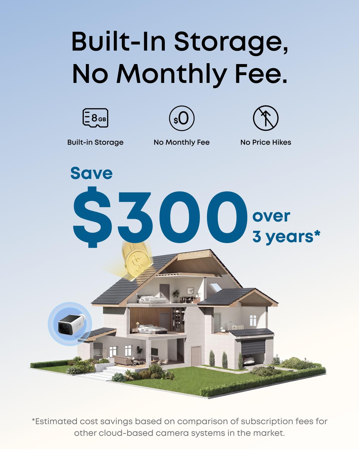 No Monthly Fee: One-time purchase. No monthly fees or hidden costs. On-device storage and AI for complete security and transparency.
