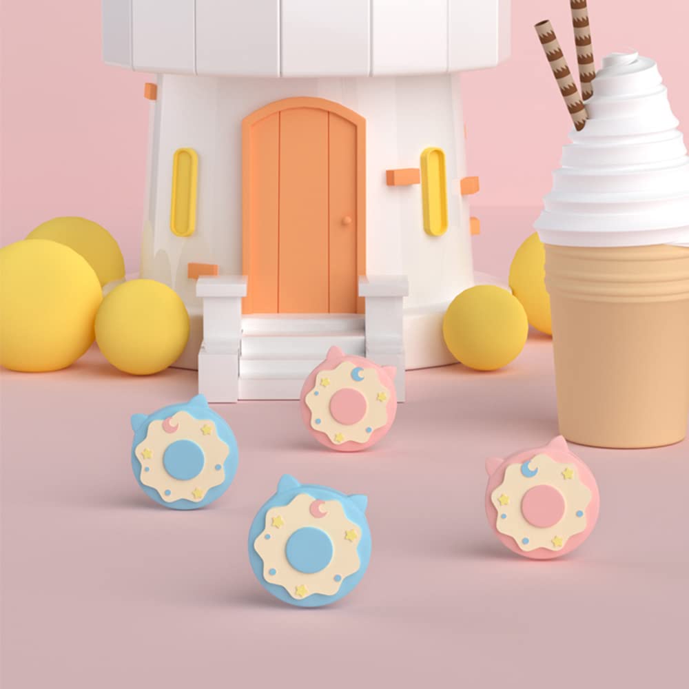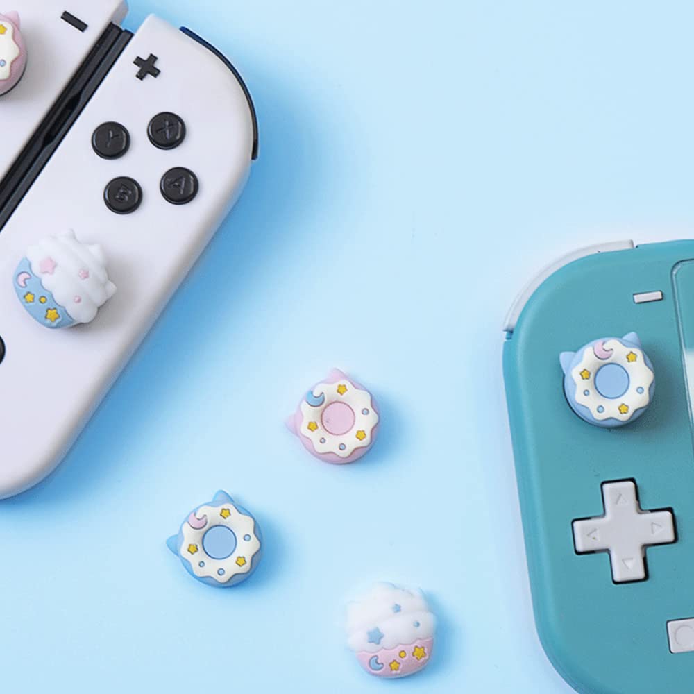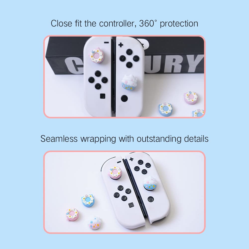 PERFECTSIGHT Cute Switch Thumb Grip Caps Compatible with Nintendo Switch OLED/Lite Console, Kawaii Soft Silicone Analog Stick Button Cover for Ns Joycon Controller, 4PCS Joystick Cap, Donut & Cupcake br/> Tired of the boring standard colors of game joysticks? Do you want to add personality and protection simply and quickly? PERFECTSIGHT joystick caps will meet your needs and bring you a new gaming experience. Blue and Yellow Dog Joy Con Caps Features: Cute lovely design, eye-catching decoration-- Cute Dog design makes your Switch & Switch Lite and Switch OLED more eye-catching. Perfect non-slip design -- Increase the friction between finger and controller. Prevent your fingers from slipping and provide more accuracy and sensitivity. This Silicone thumbstick cap is specially designed for Nintendo Switch & Switch Lite & Switch OLED Joycon, which can provide effective protection for your analog sticksEasy Installation -- Just turn the grips inside-out and pop over the sticks. Specification: Material: Silicone Compatible models: Switch & Switch Lite Ideal present for switch players -- Our cute thumb grip caps set is with lovely box packing, which is a great present for girls, friends, children and all age switch games lovers. Package include: 4* Analog Thumb Grips Caps Note: The joystick, game console and others are not included! How to install PERFECTSIGHT Thumb Grips Caps? 1. Lift up the bottom edge of the thumb grip completely. 2. Align on the joystick. 3.Align and Release the caps. Please note: Check if the caps wrap the joystick completely to prevent them from pop off when you playing. Warm Note: This joystick cover is not suitable for ps4/5, not for Switch Pro or for Xbox One controller. If you find any problem.