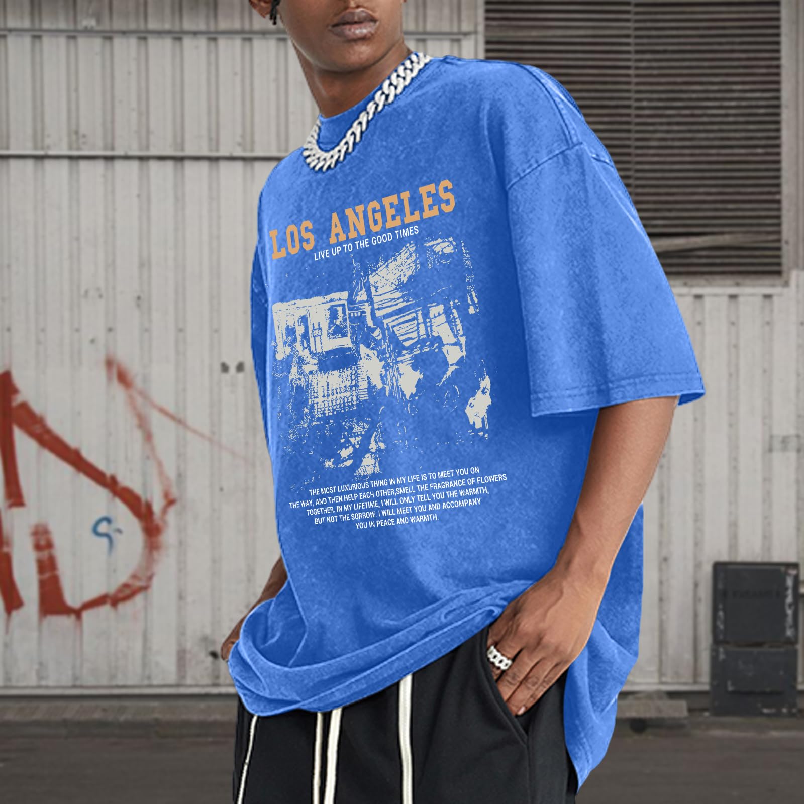 Stylish Versatility: Embrace the vintage vibe with our los angeles short sleeve shirt, designed to be fashion-forward yet classic. These baggy shirts elevate any outfit, suitable for pairing with shorts, jeans, or sweatpants