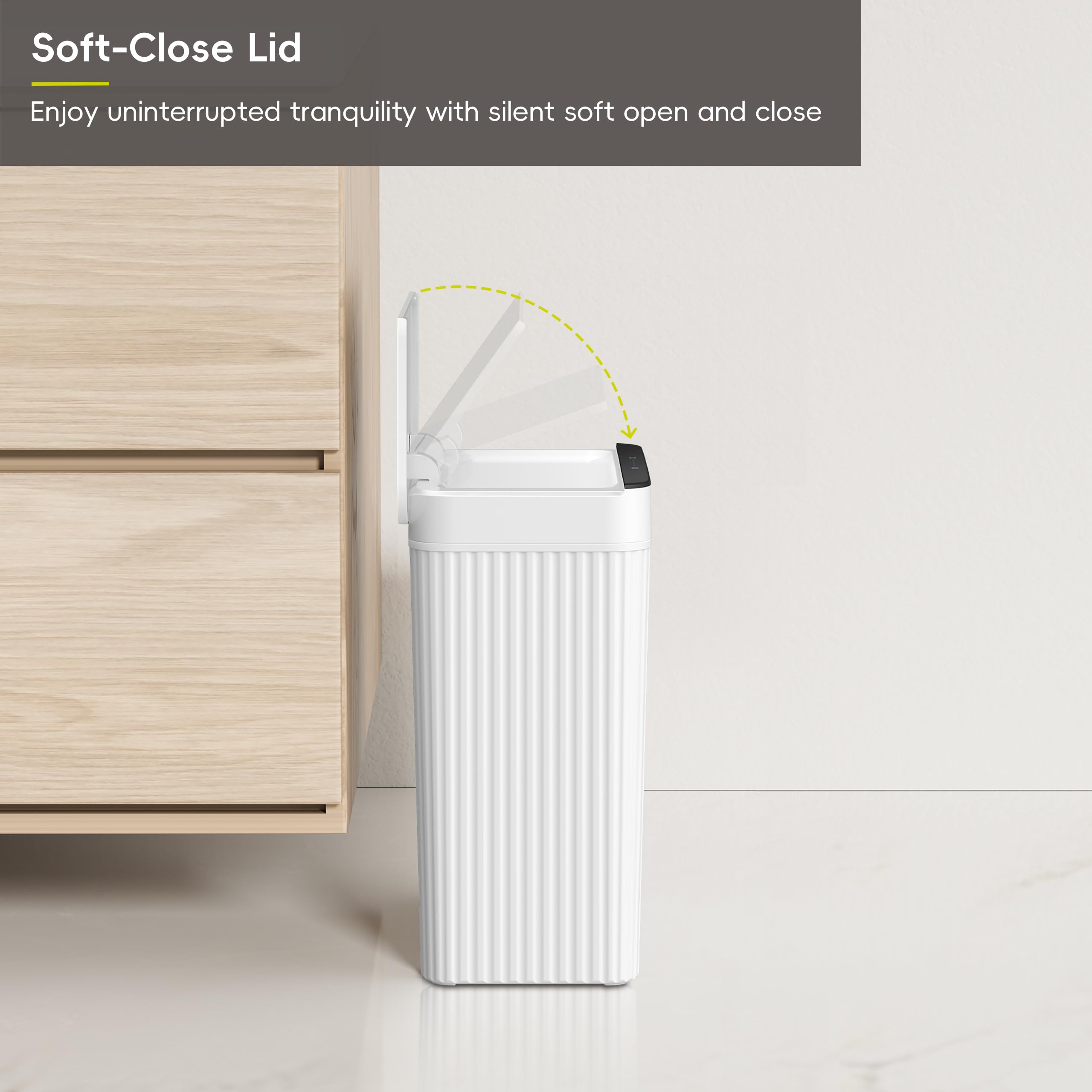 Premium Motion Sensor Technology – This motion sensor trash can responds instantly with fast, accurate lid opening—no false triggers, no delays. Enjoy smooth, quiet, and reliable automatic touchless trash can operation every time