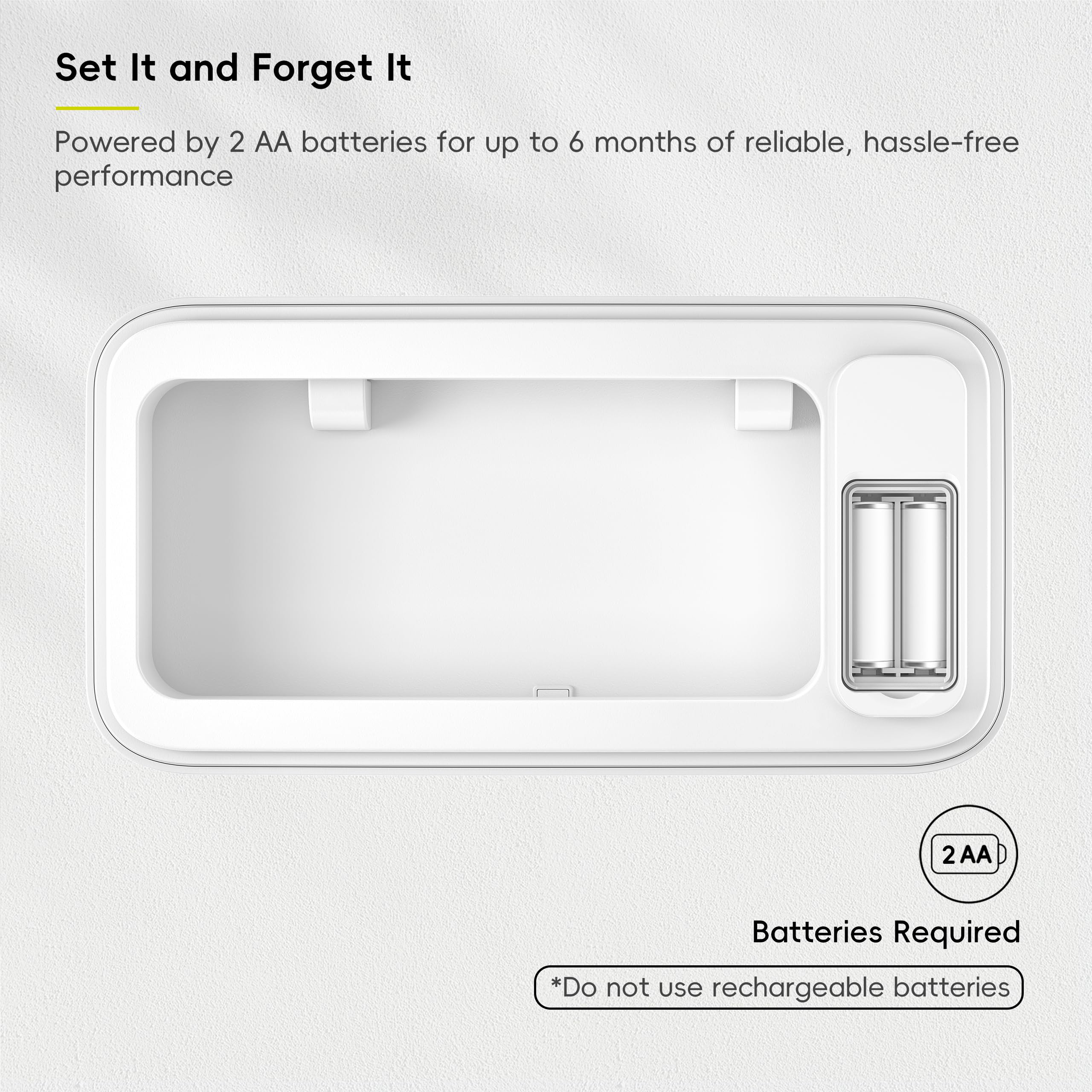 Energy-Efficient – This battery operated trash can runs on just 2 AA batteries, providing up to 6 months of reliable, touchless trash can performance without frequent replacements