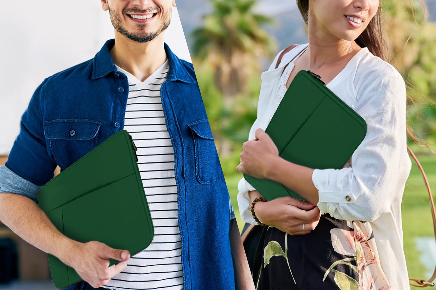 EXTRA STORAGE SPACE: Extra two pocket in front for additional storage such as charger, power adaptors, external hard drive, earphone, cables, Portable Mouse, Keys, Cards, Pens, Cell Phone and other accessories etc. This protective carrying sleeve case bag with pocket is ideal for you to take your laptop notebook computer out.