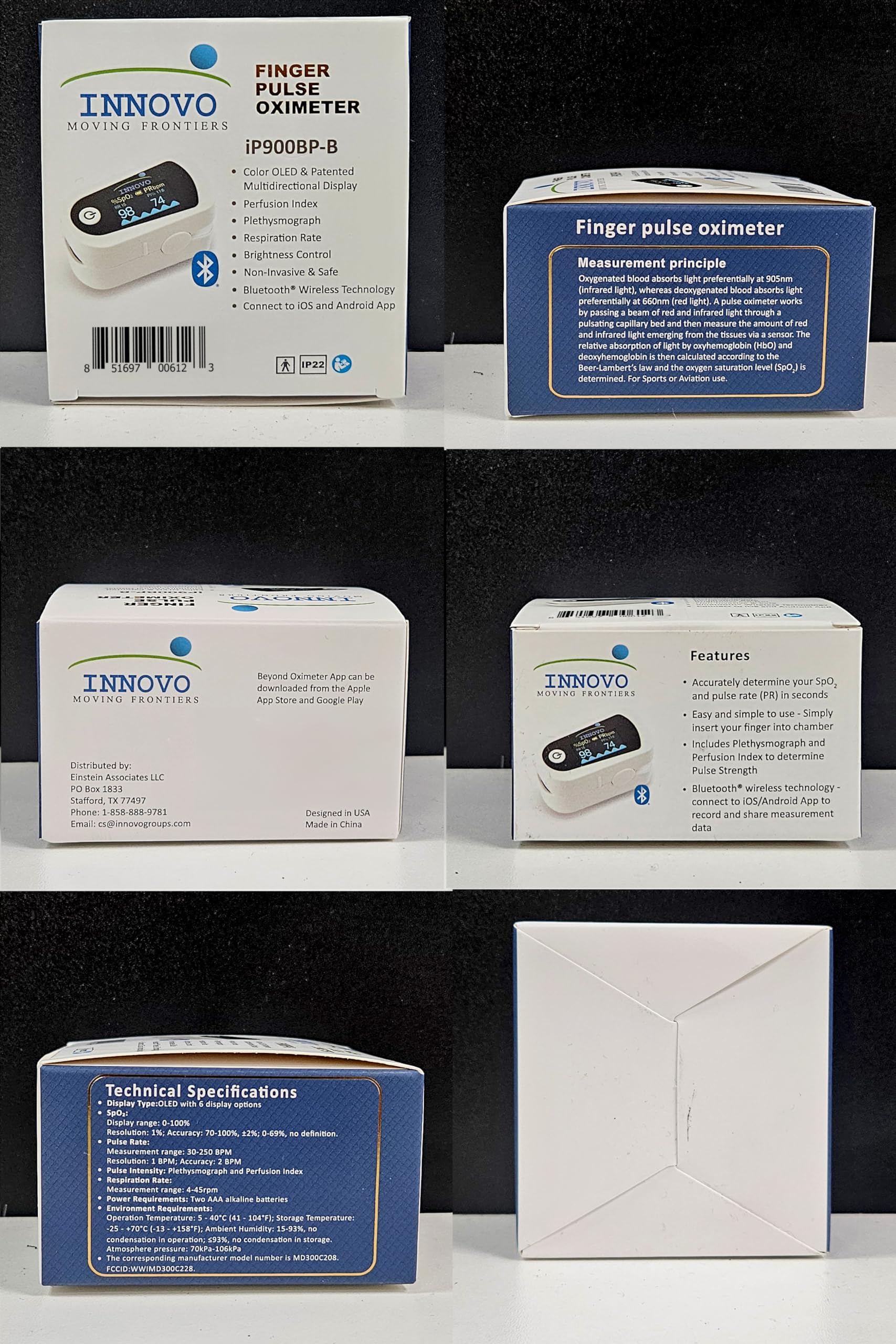 Accurate and Reliable - The Innovo iP900BP-B Finger Pulse Oximeter is a premium model with an improved LED and sensor, allowing SpO2 and pulse rate measurement even at low blood perfusion.