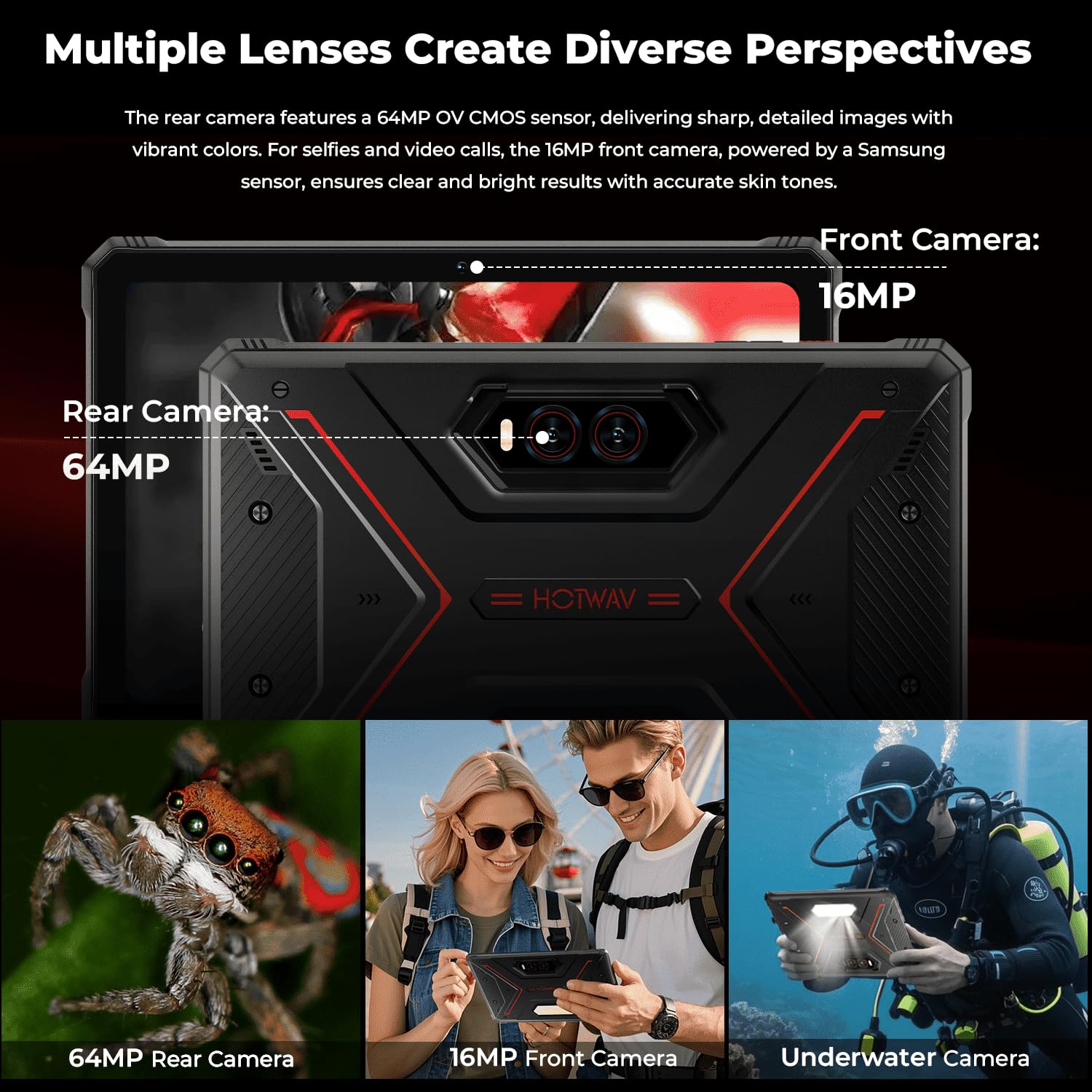 ๐ธใProfessional-Grade CameraใWhy settle for mediocrity when you can capture the extraordinary? The R9 Plus rugged Android tablet is equipped with a 64MP ๐UHD rear camera, making every photo a masterpiece. In addition, the 16MP front camera ensures your video calls and selfies are clear and sharp. This elite tablet also supports underwater photography, which can present amazing clarity even underwater. Whether you are documenting your adventure or hosting an online meeting, this waterproof tablet allows you to capture every wonderful moment and make it a perfect picture. ๐๐ท