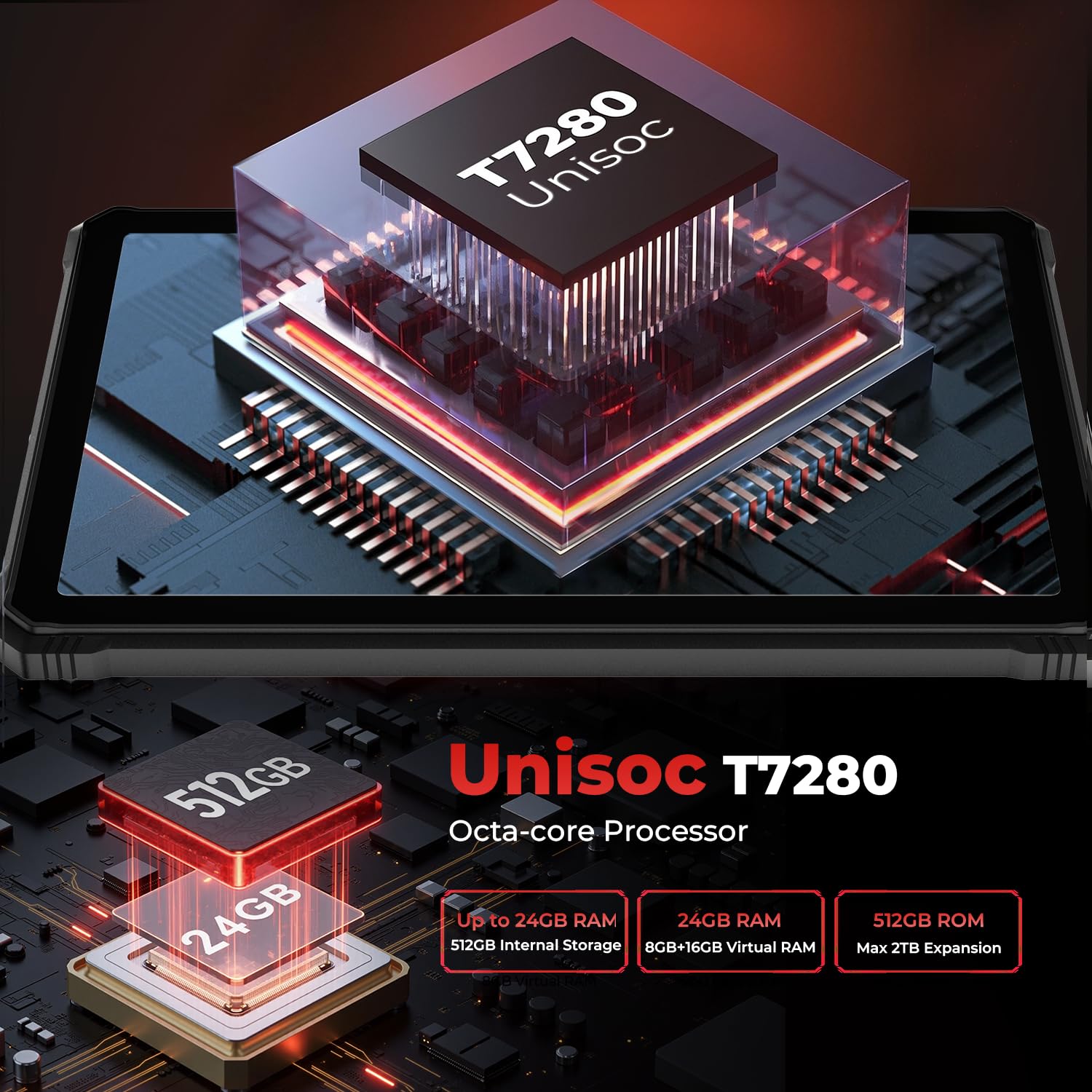 ๐ฅใUnstoppable Power Meets Elite PerformanceใThe HOTWAV R9 Plus isnโt just a tabletโitโs a performance beast engineered to dominate. With a lightning-fast Unisoc T7280 octa-core processor, an astounding 24GB total memory ๐(8GB RAM + 16GB virtual RAM), and a colossal 512GB storage (expandable to 2TB), this rugged tablet redefines speed and efficiency. Multitask like a pro, game without limits, and conquer productivityโthis unstoppable waterproof tablet is your ultimate digital weapon.