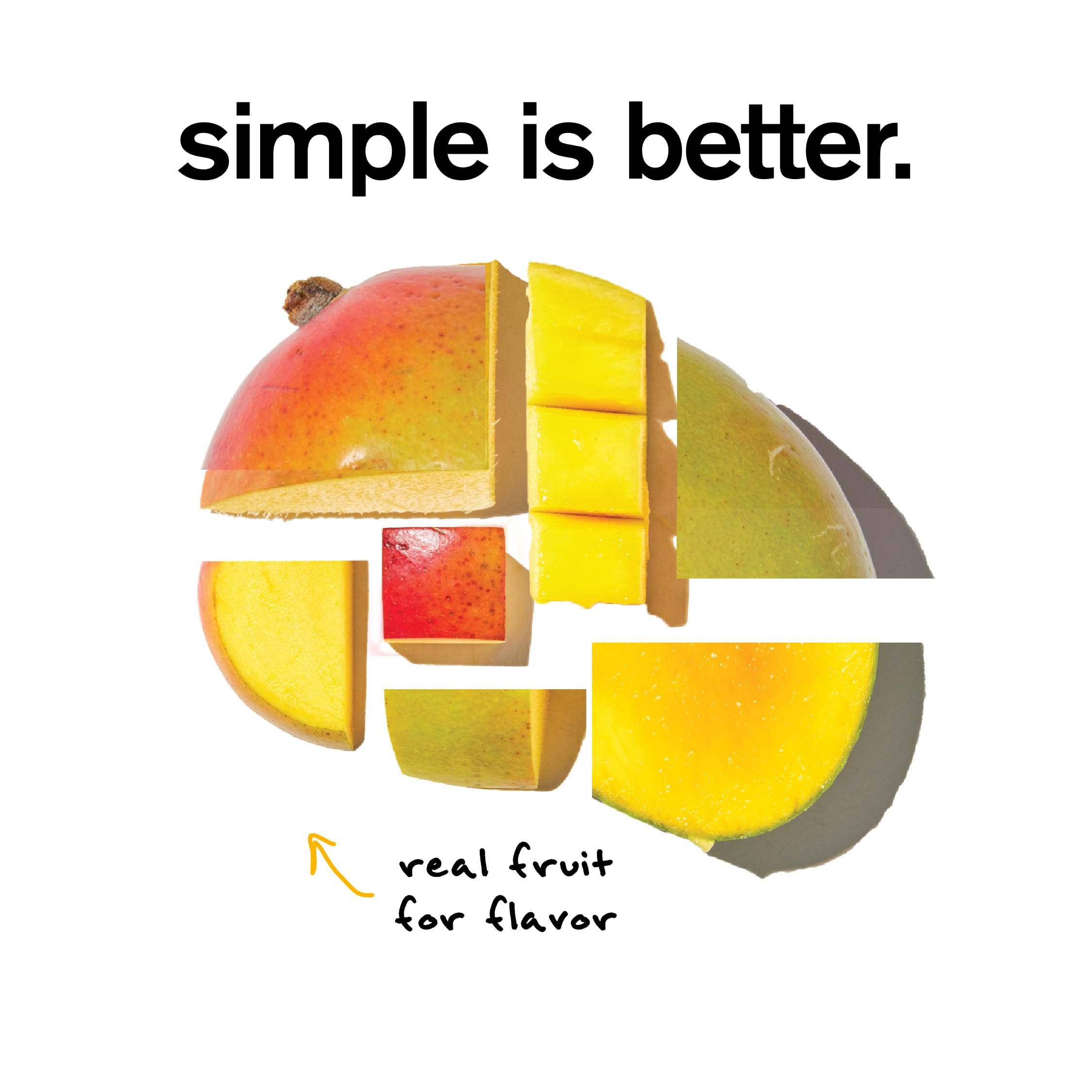 MANGO: Fresh, juicy, balanced real mango fruit flavor made with clean ingredients; vegan, non‑GMO, gluten‑free, dairy‑free, and Kosher.