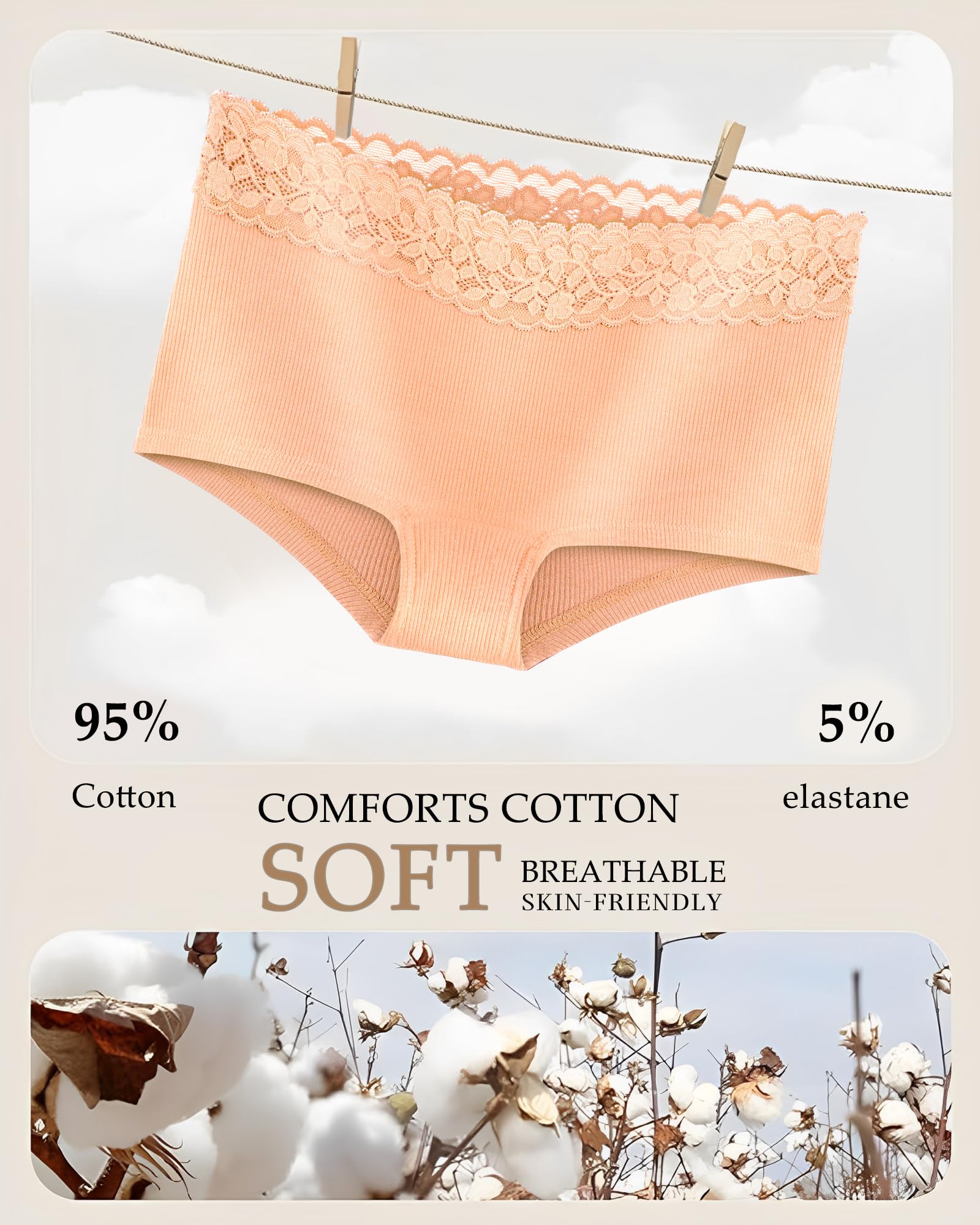 Panties For Women: These ladies underwear, made mostly of cotton (95%), may shrink a bit when washed, but adjusting the water temperature can minimize this effect. If you have any questions or suggestions, please feel free to contact us at any time.