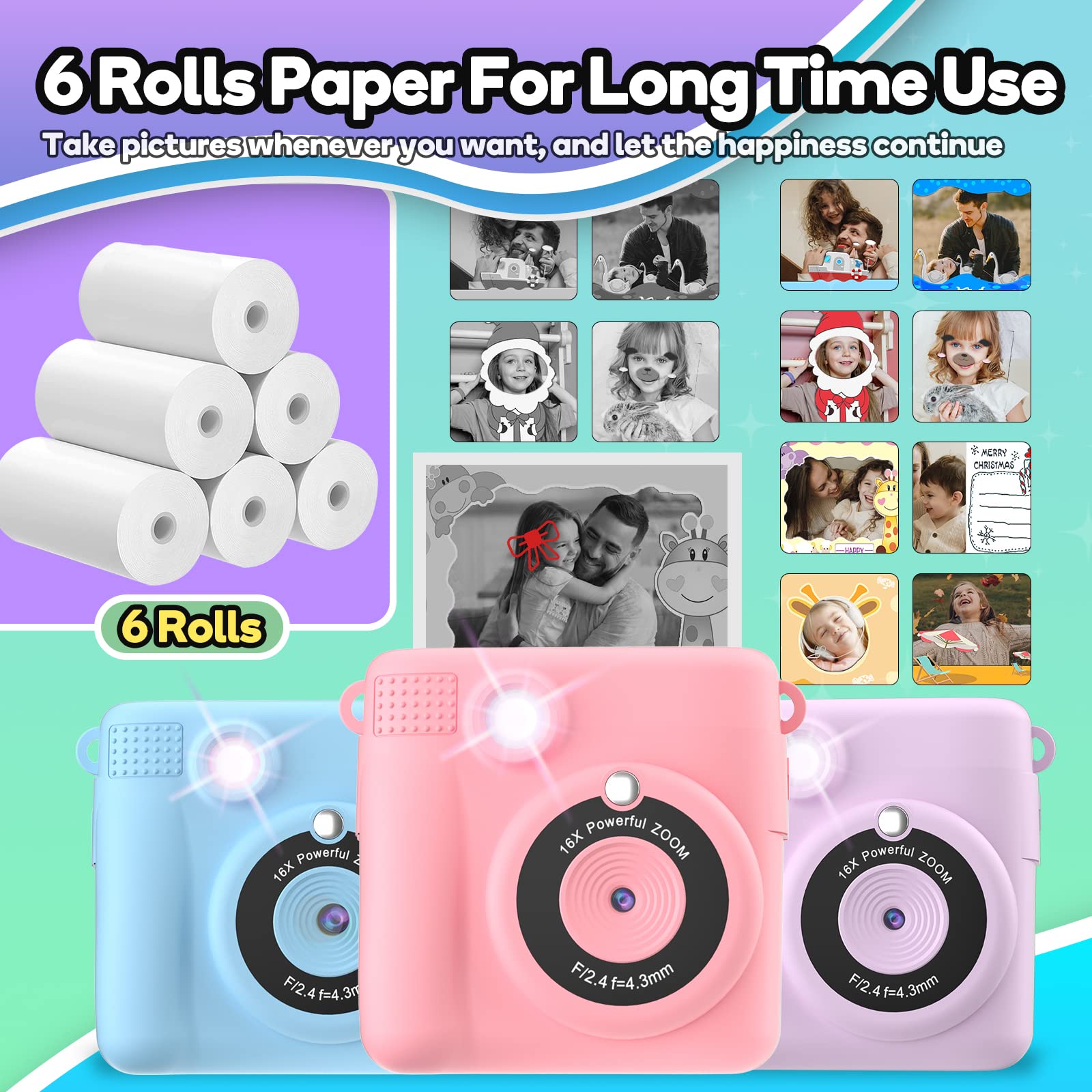6 Rolls Print Paper:Refill print paper for ESOXOFFORE kids instant camera. Each paper roll can print around 124 photos with the camera toys.Single paper size: about 4'' x 2.2''(L x W)