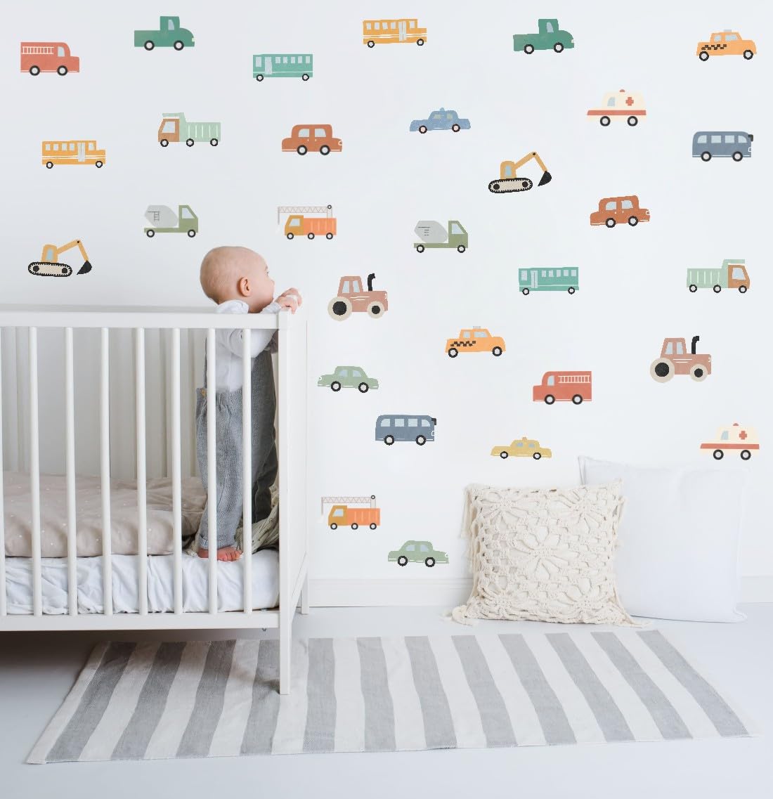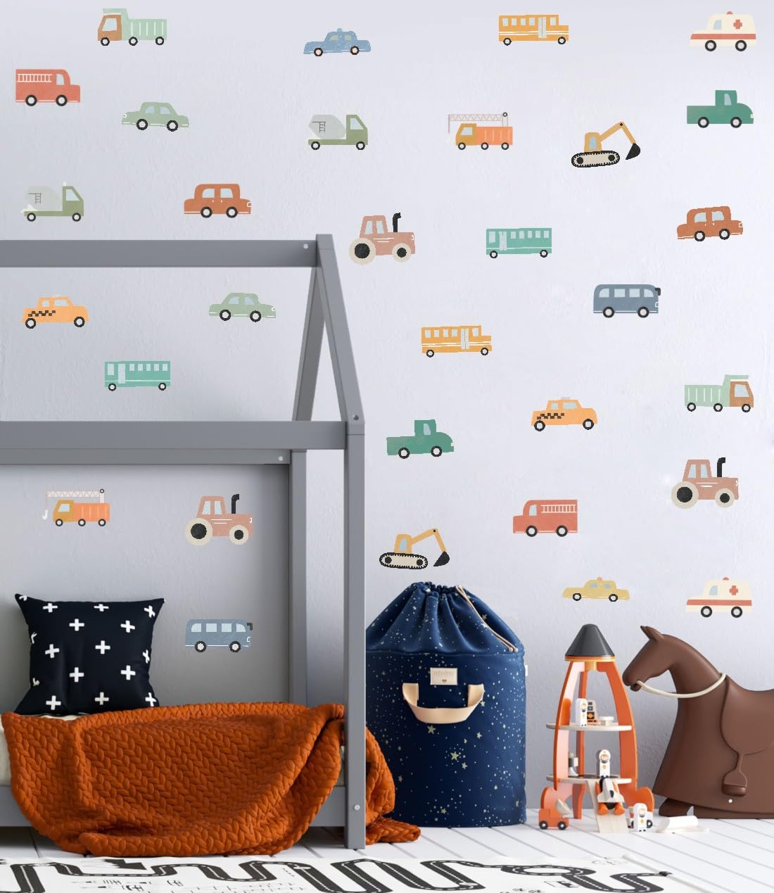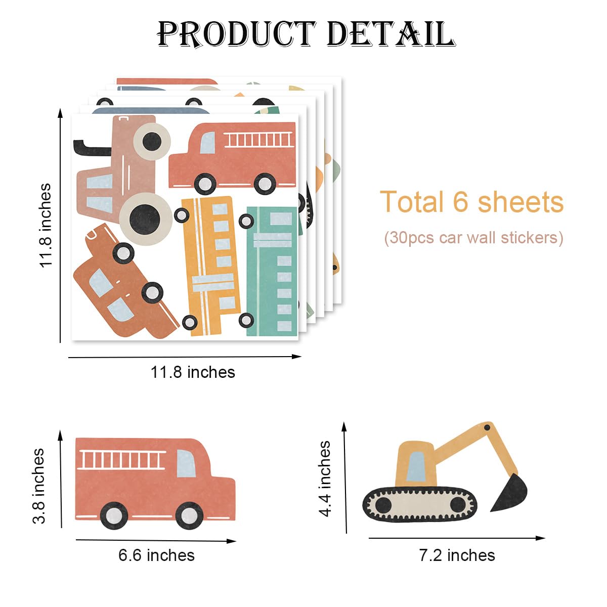 ♥Product Details: What you received is 6 sheets construction car wall stickers (total 30pcs). Which include the truck, tractor, excavator, bus.....car size approximate:6.7”x3.9”.
