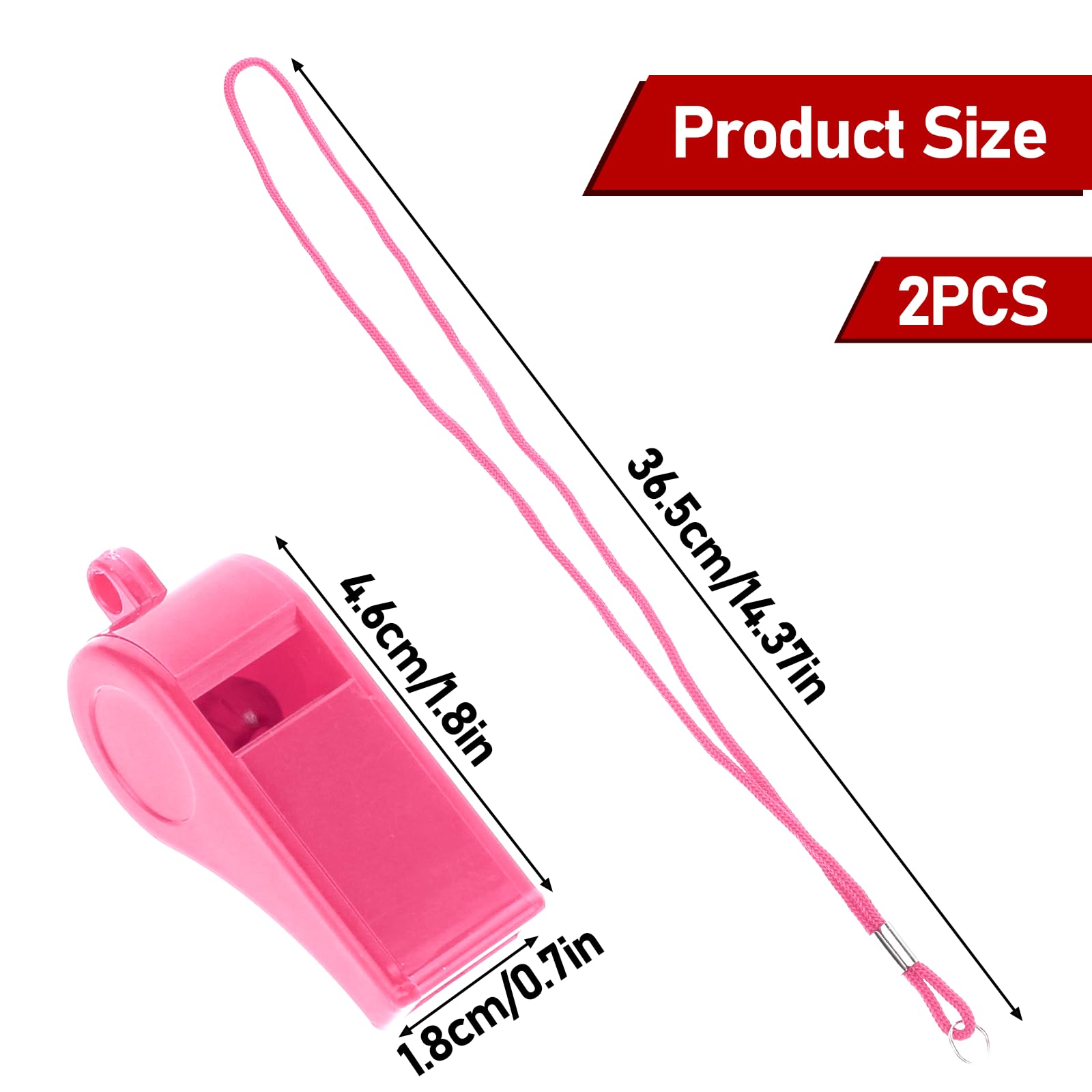 Features: Whether it's a coach in charge of the sports field, a traffic policeman directing traffic, or a teacher imparting knowledge, these whistles can perfectly meet the needs of survival, emergency rescue, animal training, school activities, gym training, and many more. The versatility of these whistles makes them ideal for a variety of occasions, whether it's sporting events, teacher teaching, emergency self-rescue, or as a unique party gift, your creativity will be endless. Product Information: Color: Pink Material: ABS Plastic Product Size: 4.6*1.8cm/1.8*0.7in Rope Length: 36.5cm/14.37in Packing List: 2PCS Pink Sports Whistle with Lanyard Note: 1. Please check if it is the size you need before purchasing. 2. Please allow slight differences due to manual measurement. 3. Due to light and screen difference, the item color may be slightly different from the pictures. Please understand.