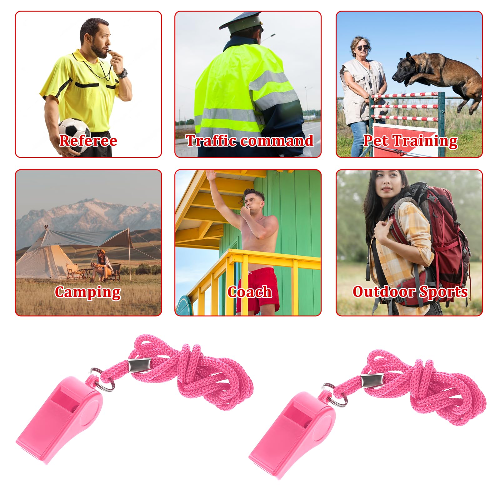 【Widely Use】The whistles are great for many different purposes! These whistles are great for sports, referees, coaches, training, teachers, survival, emergency, school, gym, rescue, camping, animal trainers, lifeguards, traffic police officers etc.