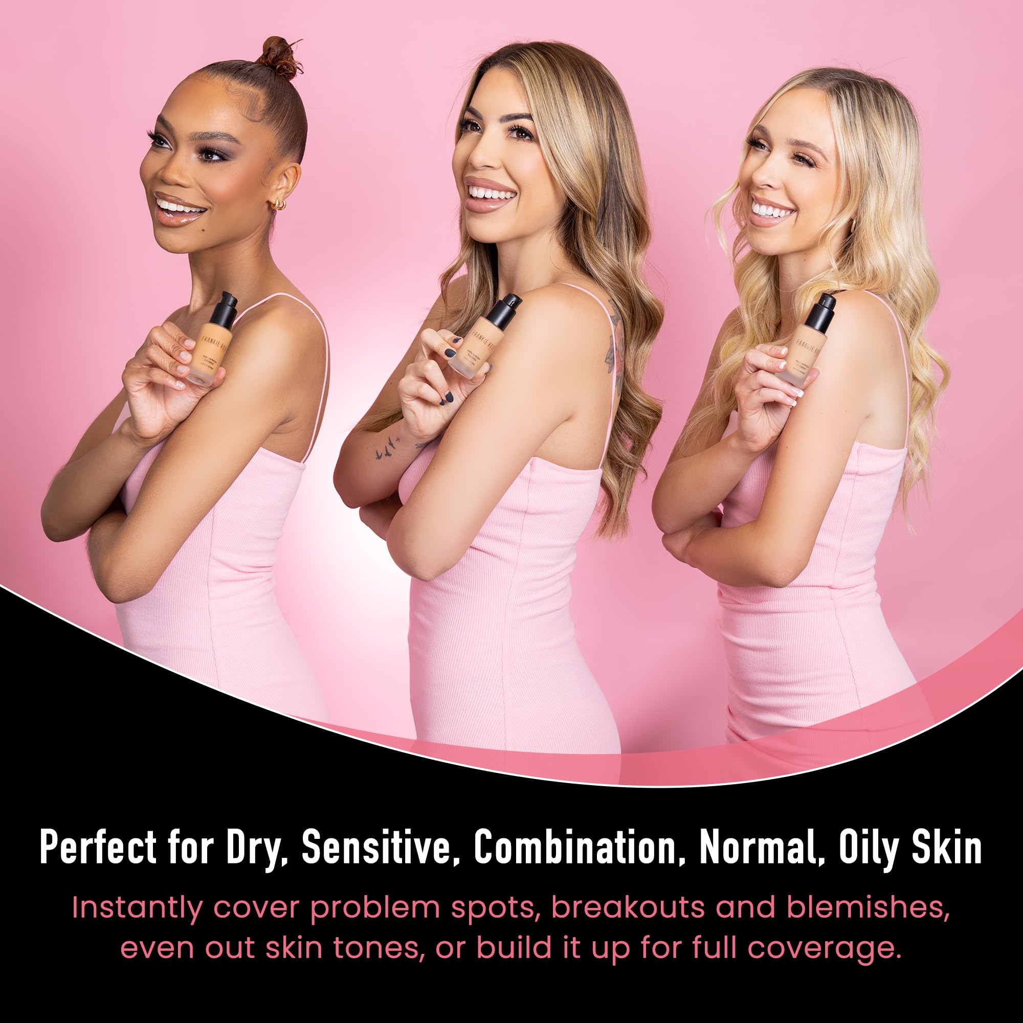 FOR ALL SKIN TYPES: Our long-lasting high-coverage foundation goes on satiny smooth with a flawless matte finish, perfect for all skin types including dry, oily, normal, combination, and sensitive skin.