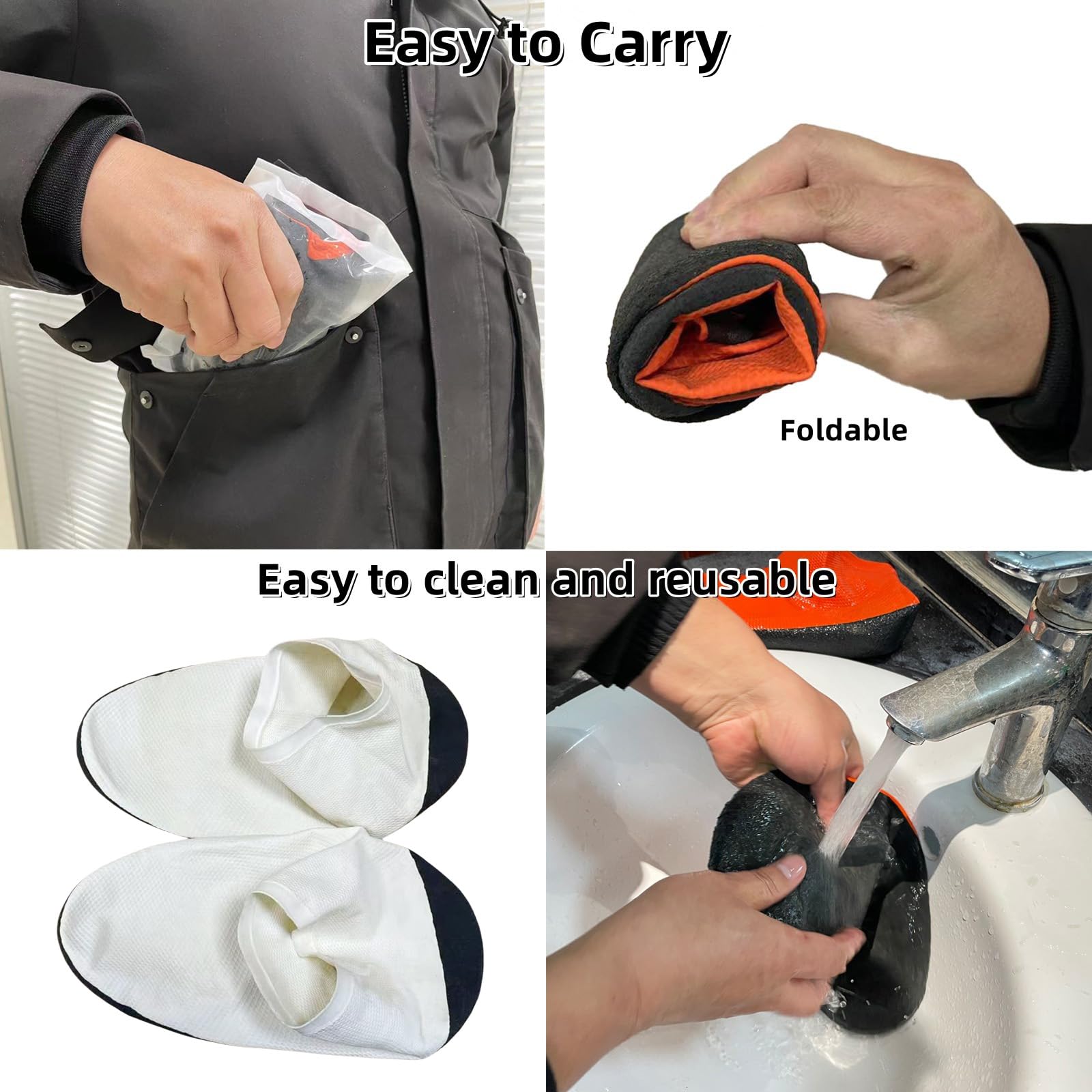 Easy to Carry: The rain shoe covers waterproof is very soft,easy to fold and store in your pocket or bag,reusable
