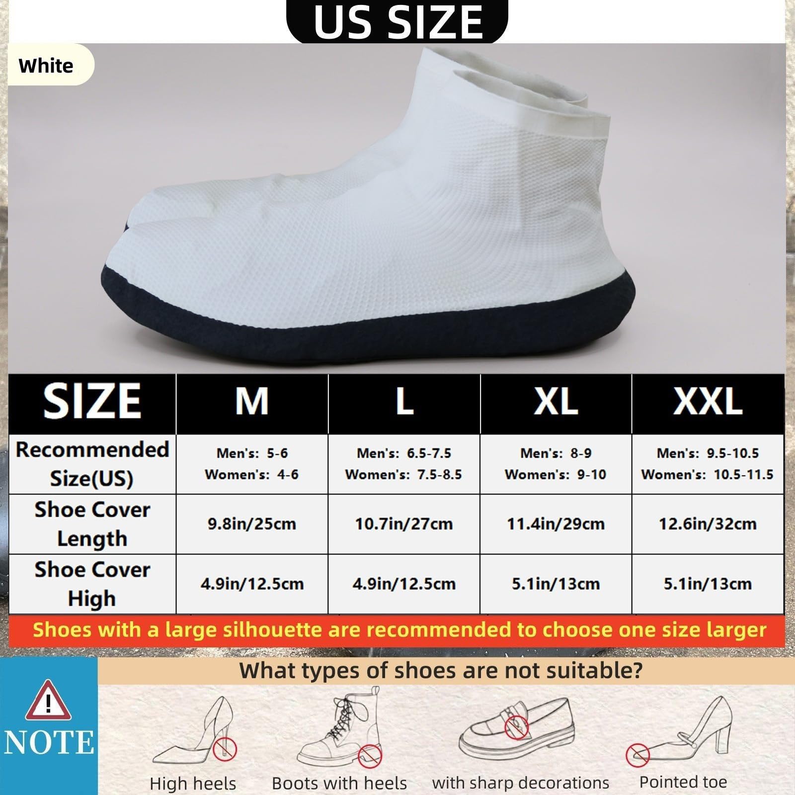 Wide Range of Application: No matter rain,snow or mud,our silicone rain covers for shoes are suitable for hiking,biking,outdoor activities,camping,fishing,snow,beach,cleaning jobs, school labs,hunting,fishing,mowing and gardening