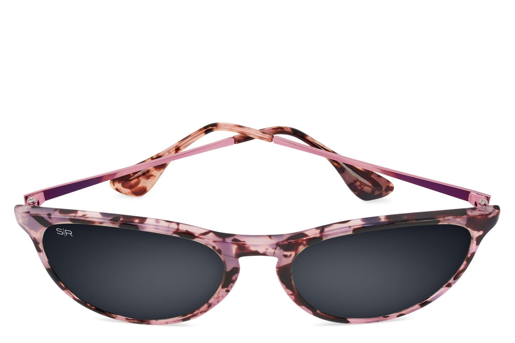 Description These sunglasses boast a pink tortoise frame with brushed pink metal temples, offering premium polarized black lenses that are non-mirrored, providing 100% UV protection, shatter-resistance, and salt water resistance, with a VLT of 9%. They come with a microfiber cleansing pouch and a vinyl brand decal. The S|R PRO POLARIZED lenses deliver an enhanced visual experience, featuring ultra-high visibility polycarbonate optics and extreme lens durability, allowing you to see life in vibrant colors. The frame also includes shiny pink metal temples, with polarized polycarbonate black lenses that have a grey tint, offering the same protection features and a VLT of 9%, along with the same accessories.