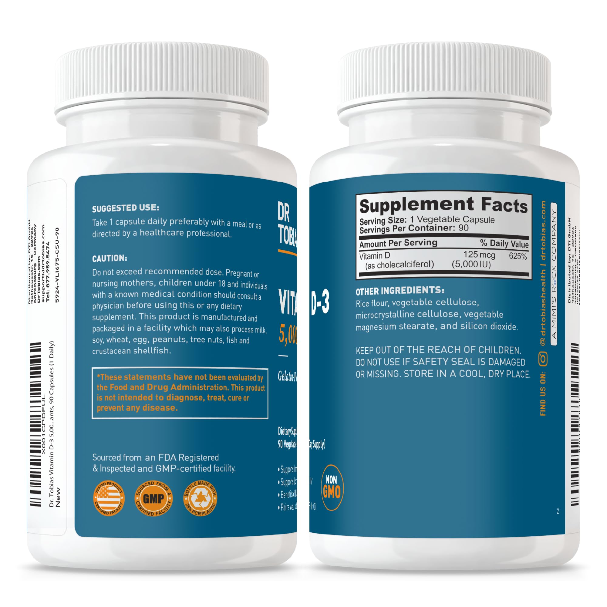 High Potency Formula: This Vitamin D supplement contains 5000 IU in each gelatin-free capsule, ensuring you get an effective dose with all the sunshine vitamin your body needs, without harmful UV rays! Take 1 daily.